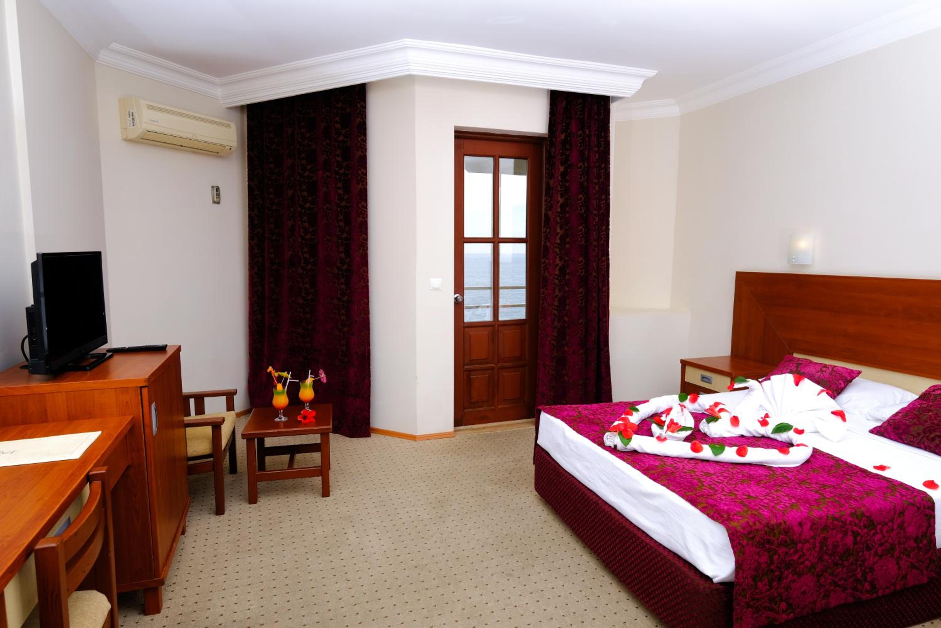 The air-conditioned rooms at Anitas Hotel are well-equipped with modern amenities including a desk, safety deposit box, TV, balcony, and private bathroom with a shower. The hotel also features a Turkish bath, table tennis, and darts for recreational activities.