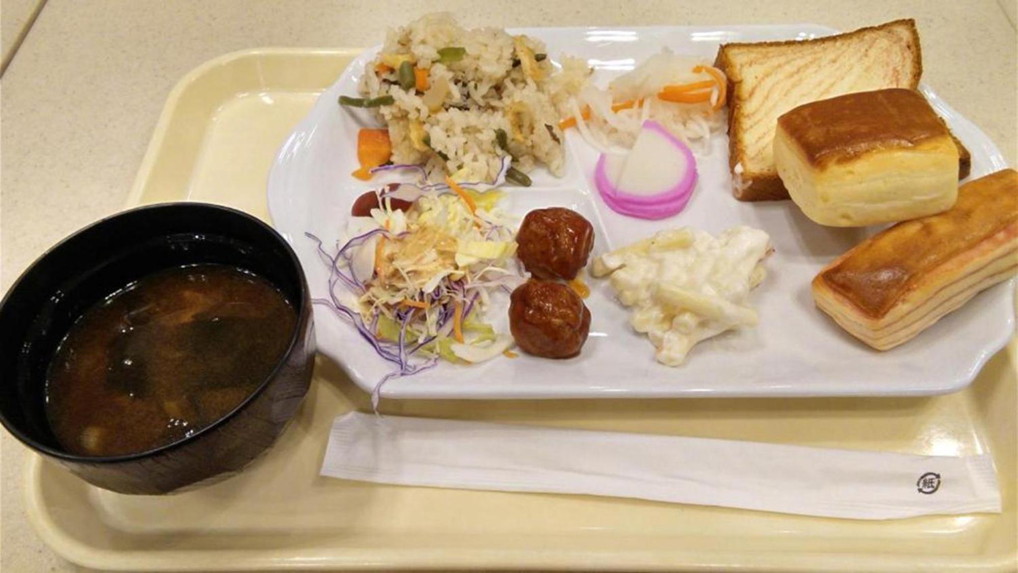 Their breakfast is a packed bento set.