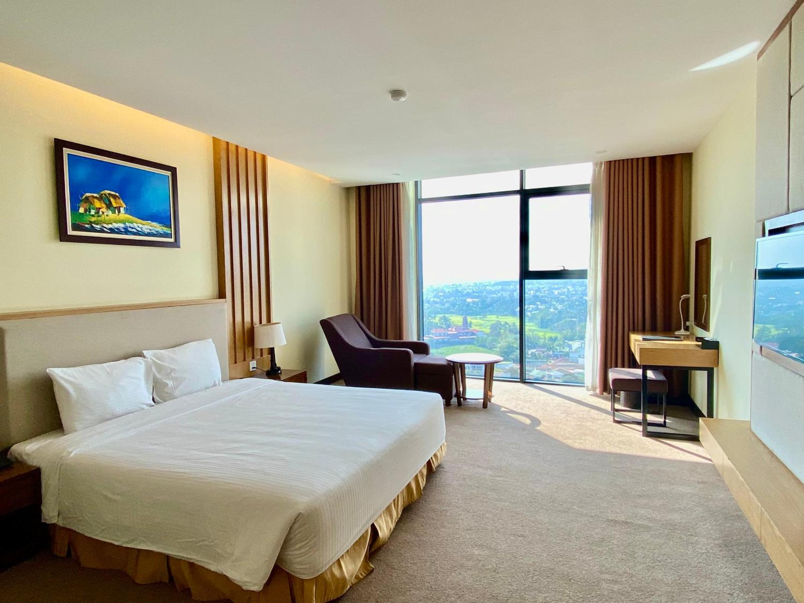Muong Thanh Luxury Buon Ma Thuot Hotel offers air-conditioned rooms equipped with modern amenities like a flat-screen TV, minibar, and private bathroom. The hotel ensures a comfortable stay with attentive room service and 24-hour front desk assistance.