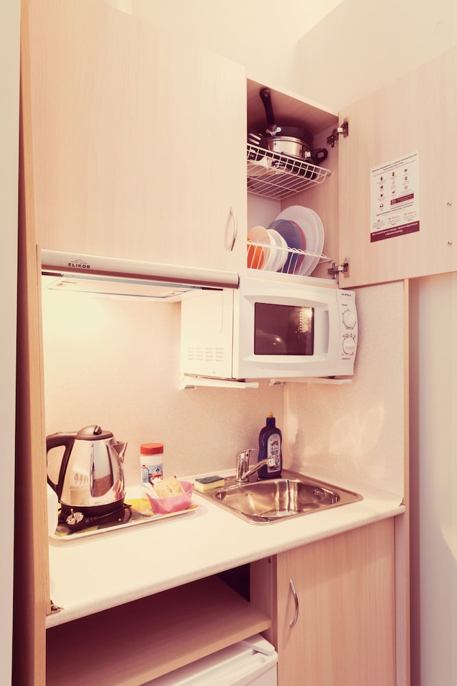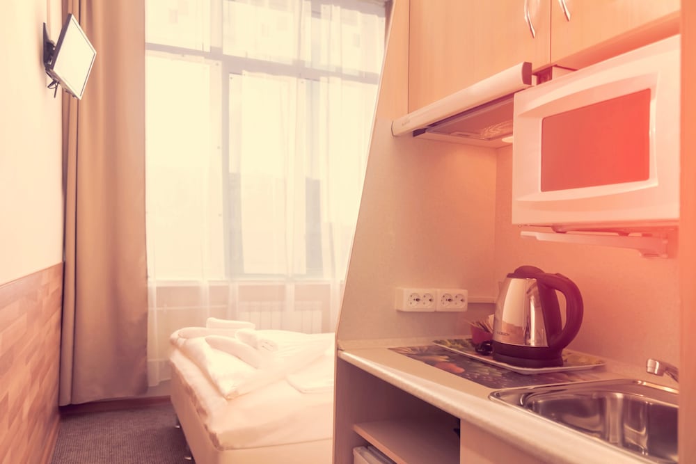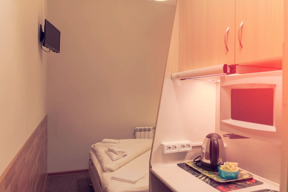 Если это деловая поездка и номер нужен только чтобы переночевать - очень хорошее решение за очень небольшой бюджет. Номер также очень небольшой, при этом предусмотрено все необходимое чайник, кофе-чай, даже микроволновка, посуда. Для полного счастья я бы добавил только тапочки и коврик около входной двери. Все достаточно чисто и удобно, на ресепшене можно купить: воду, пиво, перекус, бритвенные, зубные принадлежности. в общем за свои деньги - супер предложение. Местоположение выбирали с коллегами согласно нашим деловым планам.