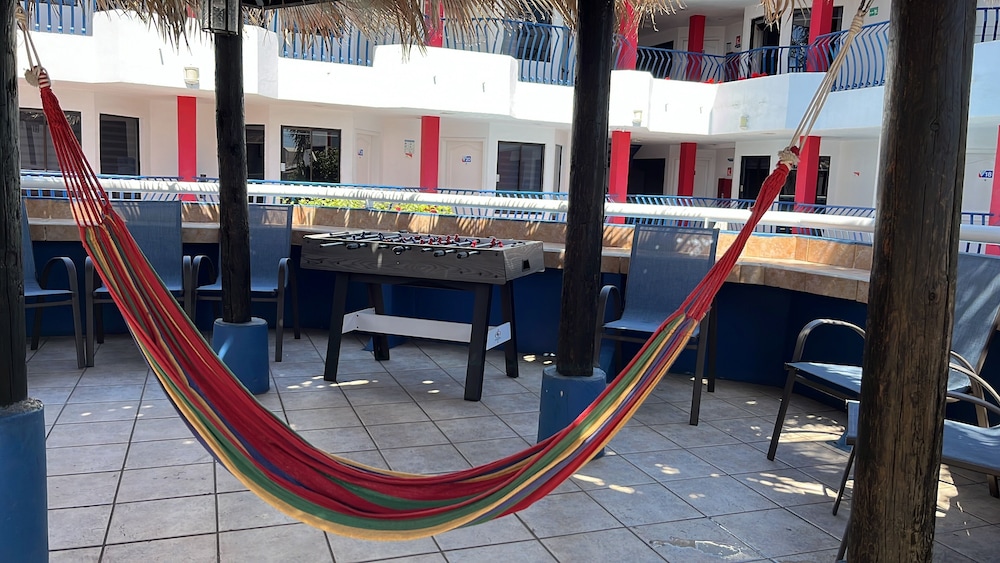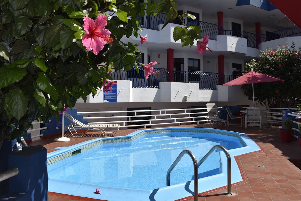 About 7 blocks to the beach (walkable). Also walking distance (2 blocks) to Ortega’s Buffet Restaurant & Oxxo convenience store, there’s a parking lot, across the street from the hotel. The beds were not very comfortable, but for the price, they were ok. The worse was that some guests had loud music by the small swimming pool, on a Tuesday, so I asked when they were supposed to stop, & I was told by a maid that usually, guests are allowed to have loud music until 11 pm. Call hotel directly to find out about the noise ordinance at +52-661-612-2490.