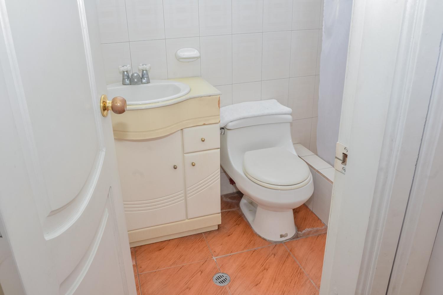 El baño muy pequeño, pero eso sí limpio como se debe 10/10