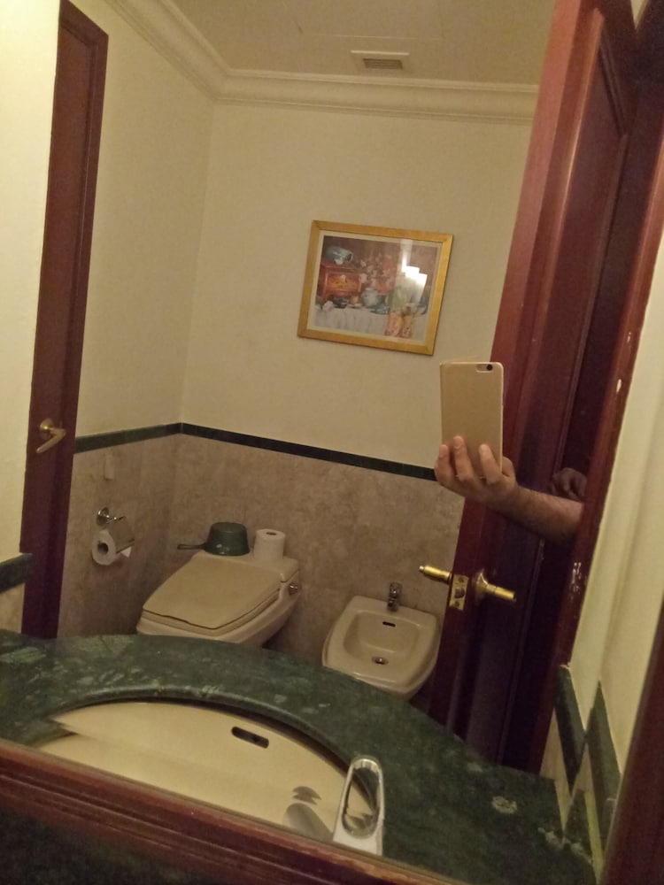 I made the mistake not reading the reviews first. I was fooled by the rooftop pool and the misleading pictures. The pictures showed modern looking rooms, our room was very dated. The rug must have been 20 years old and it showed. The furniture was old but useable. The carpets made us feel dirty. The bathroom had grime on the seals.