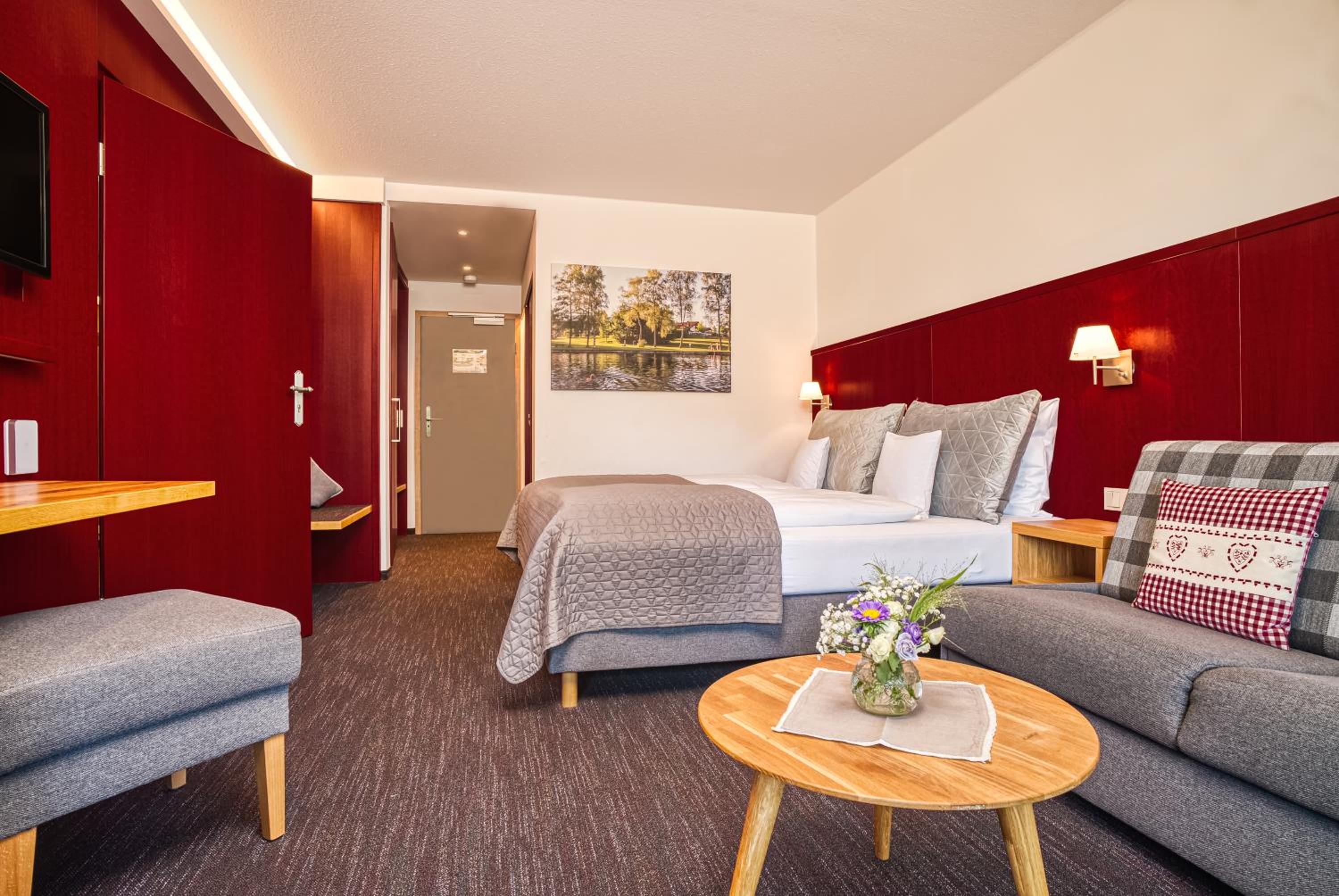 Wir hatten ein großräumiges Zimmer mit Balkon und tollem Ausblick. Die Lage war sehr ruhig. Das Frühstück mit großem Buffet im Festsaal war außergewöhnlich gut,. Das Abendessen war ausgezeichnet. Wir haben die gemütliche Atmosphäre sehr genossen.