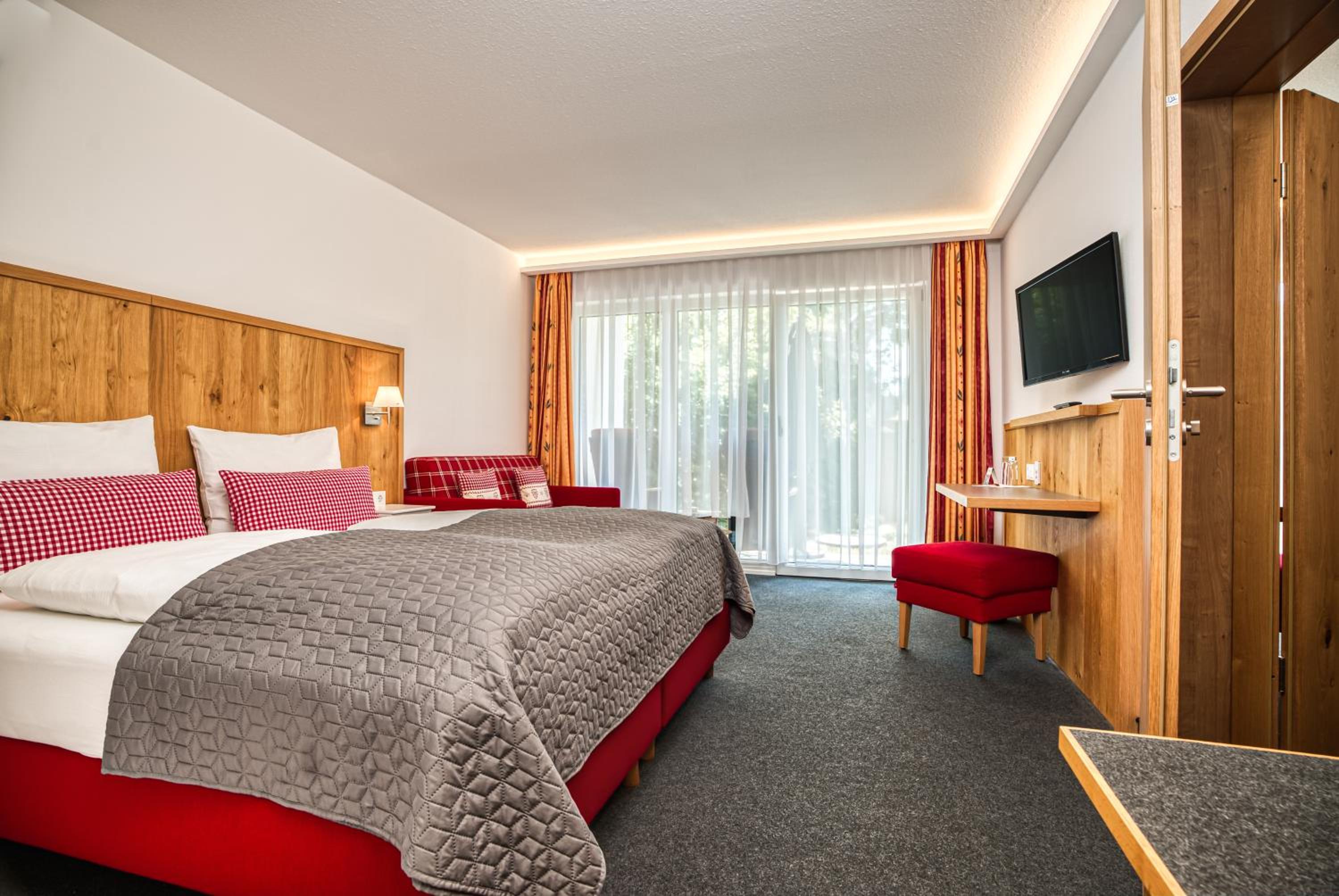 Relaxation and Recreation: Unwind by the fireplace in the cozy lounge or on the spacious terrace overlooking the garden. In the summer, enjoy a refreshing drink outdoors. The hotel also features a Kneipp hydrotherapy area, mud bath, mini golf, and a bowling alley for evening entertainment.