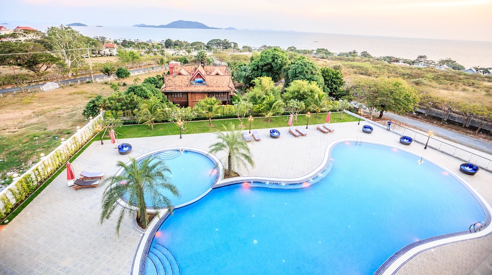 Meget bra hotell med hyggelig personale som alltid vil yte deg god service. Store romslige dobbeltrom med meget store og gode denger og flott bad. Leie av hotellets Tuk Tuk for 3 dollar eller gratis sykler. Fin strand 10-15 min gåtur eller 4-5 min sykkeltur. Grei frokostbuffet med noe begrenset europeisk meny. God restaurant ved svømmebassenget. Sandwich anbefales! Vi var en familie på fem som forlenget vårt opphold med fire dager da vi var så fornøyd med hotellet og værmeldingen viste bedre vær i Kep enn i Sihanoukville.