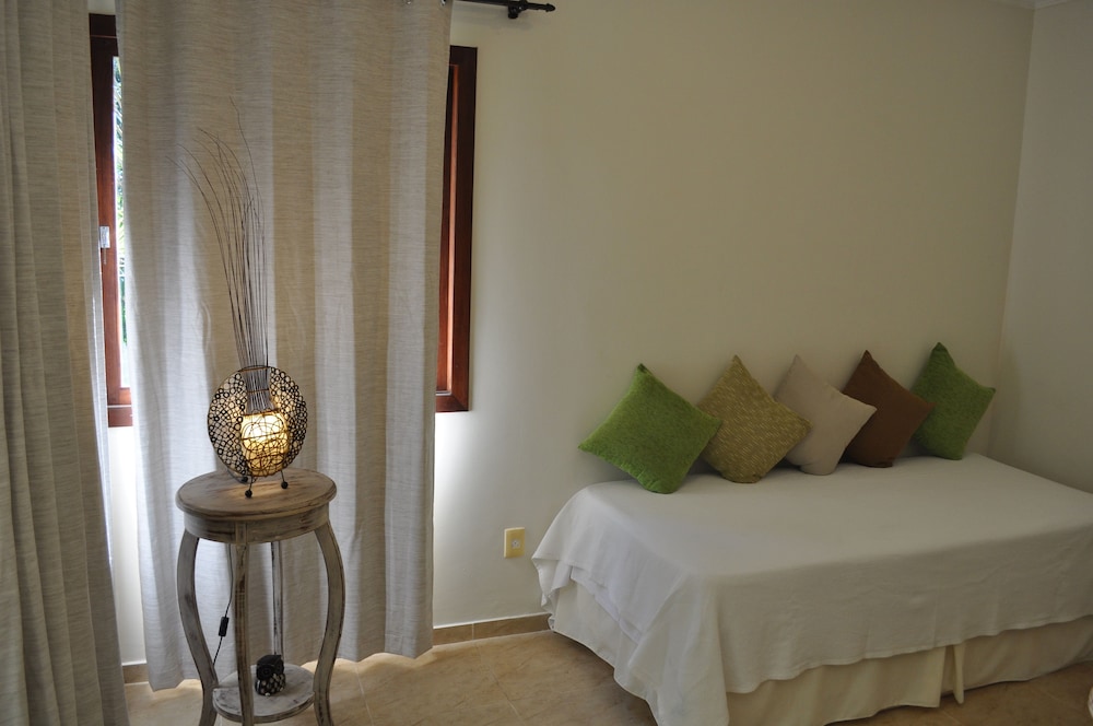 O estacionamento é conveniente, a área da piscina é bonita, e o lugar é plenamente silencioso. O acesso ao centro da Pipa tem que ser feito por carro. O café da manhã é variado e bom. Estivemos em um grupo com 5 chalés alugados, então pudemos verificar que alguns deles são dotados de geladeira, sofás e camas mais novas que outros. Alguns têm microondas, outros não. Pelo preço cobrado, vale a pena. Embora os móveis sejam bem austeros, o ar condicionado funciona bem e o chuveiro também, que é o que importa.