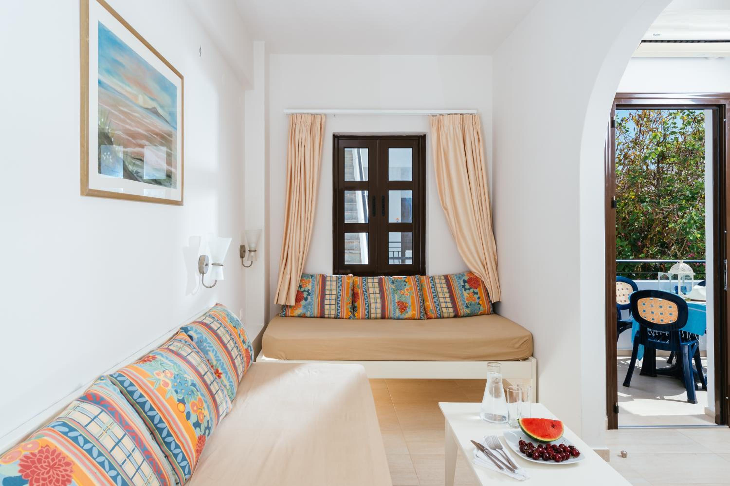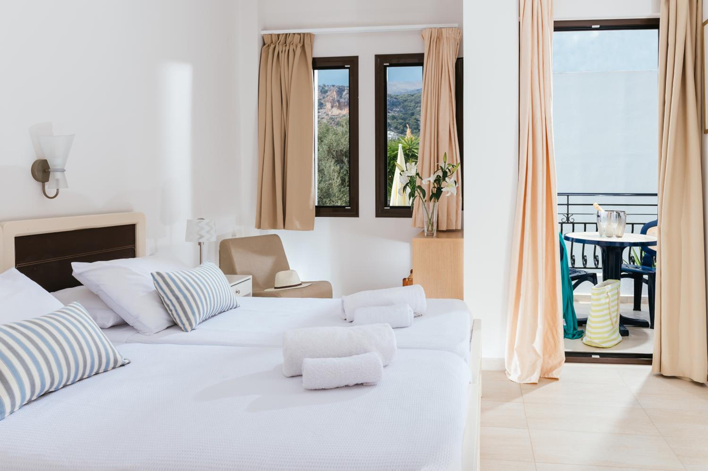 the apartments are super clean, quiet, and the pool is great. there are lots of tavernas, super markets, and activities nearby. so we can totally recommend staying there.