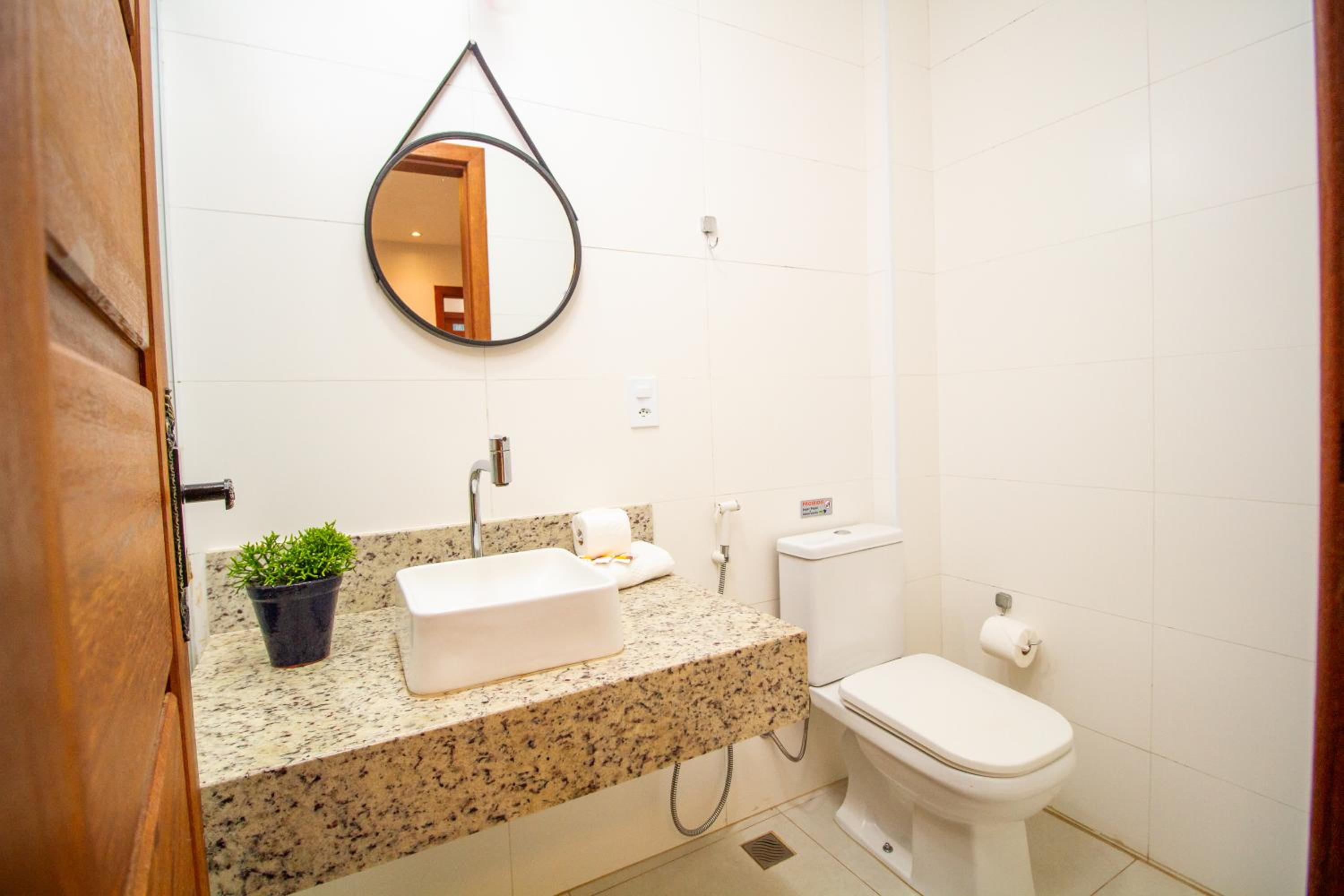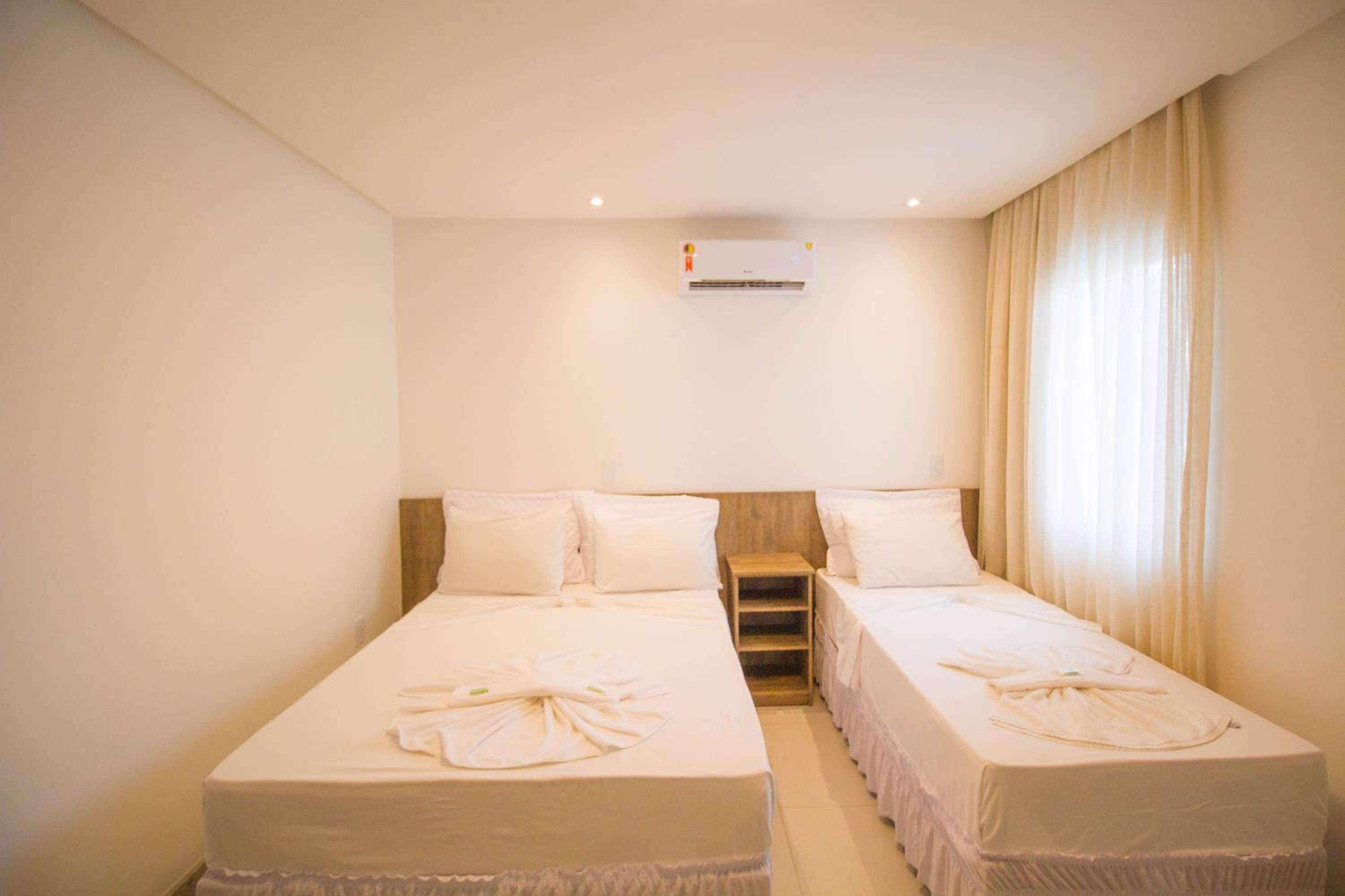 Each air-conditioned room at Bem Brasil Hotel features essential amenities like a TV, minibar, and a private bathroom, ensuring a cozy stay for guests.