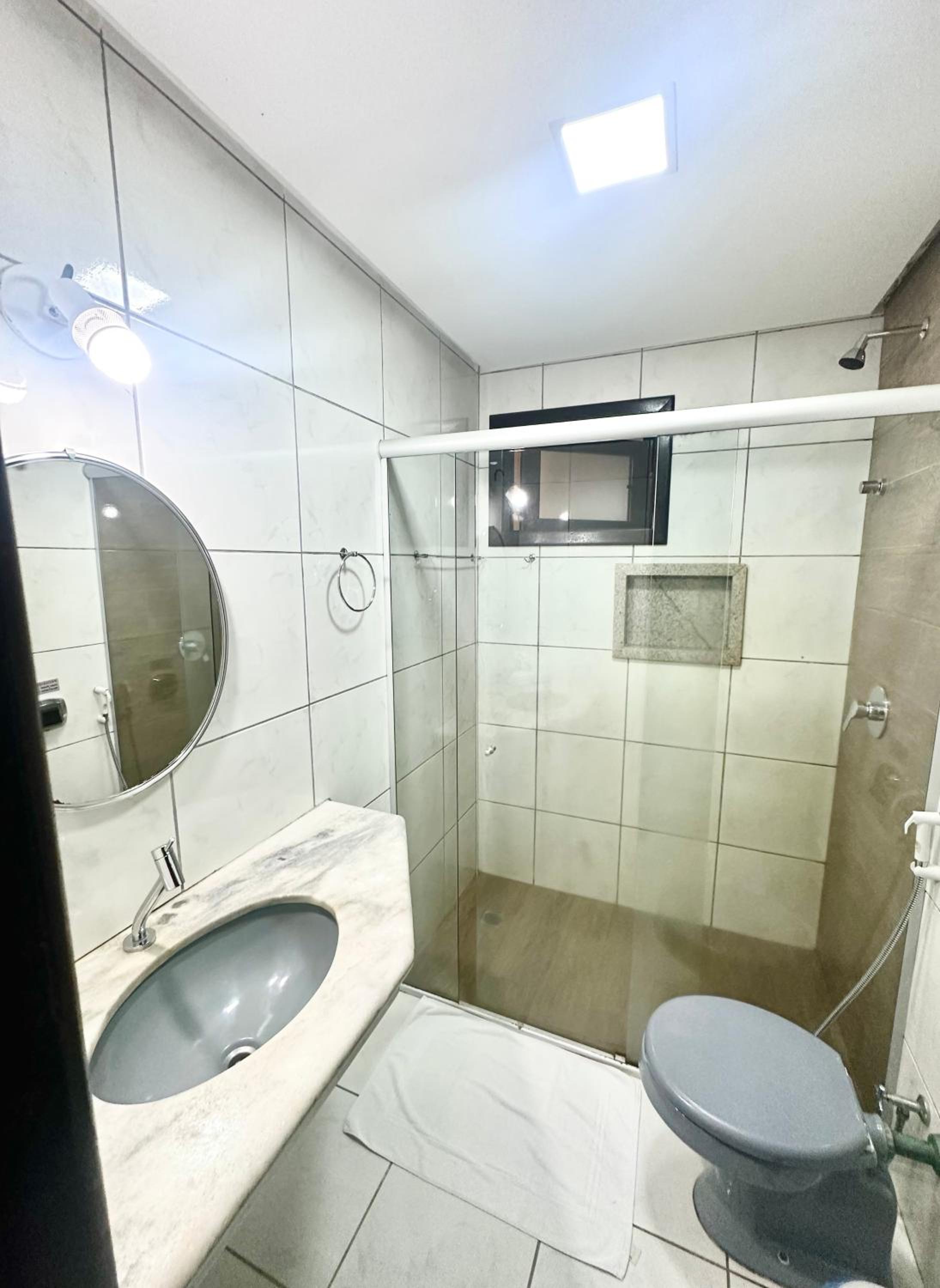 Banheiro muito pequeno.