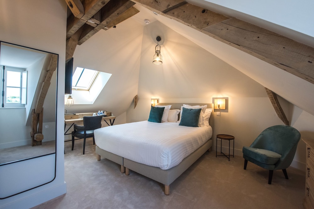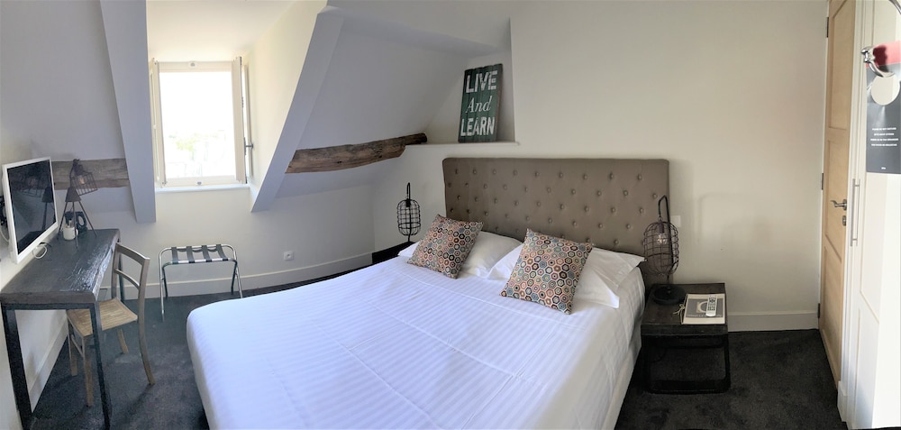 This is a very centrally located hotel. We liked its closeness to restaurants and the chateau and being able to charge our electric car in the car park. You need to book your parking space as they are limited. I’d recommend going for an upgraded room rather than a basic one. We were in room 2, this is in the courtyard with an external window. unfortunately at night the light came on every time someone walked past and the curtain was not wide enough to block it out. The bathroom had a bath and no upright shower just a hand held shower. The taps were not accessible unless you stood inside the bath. The room was very clean but sadly the cleaner left our door unlocked one day. Luckily nothing was taken.