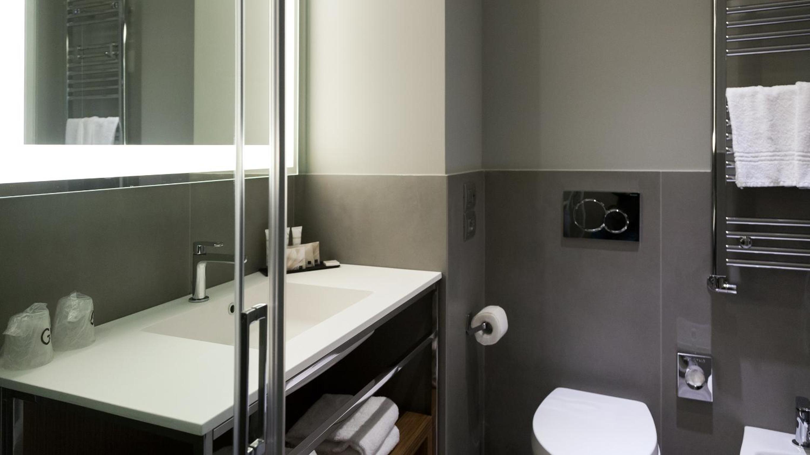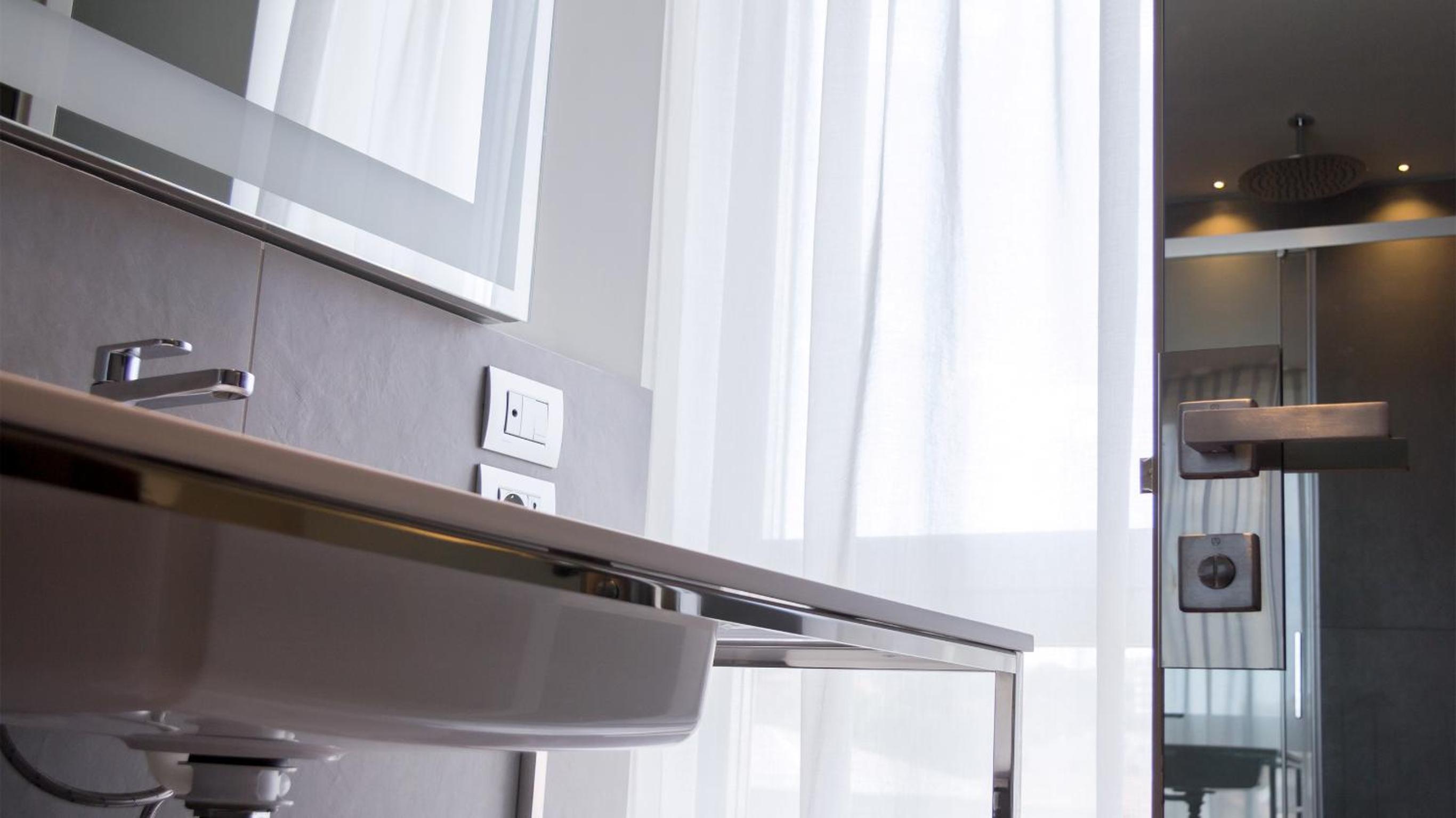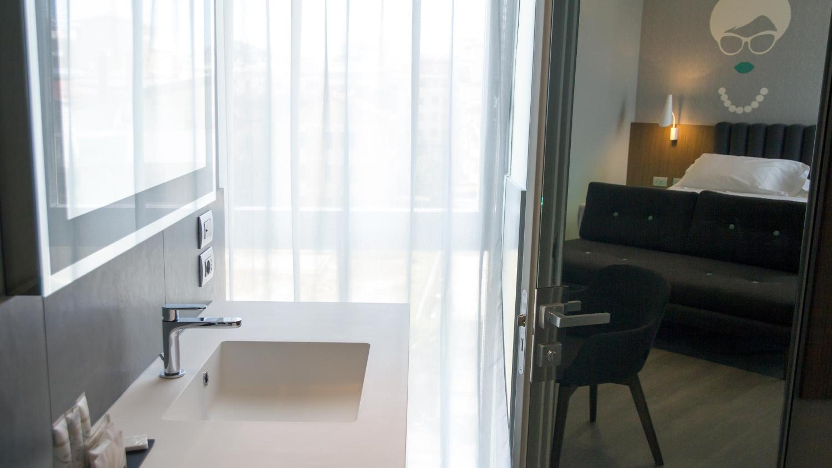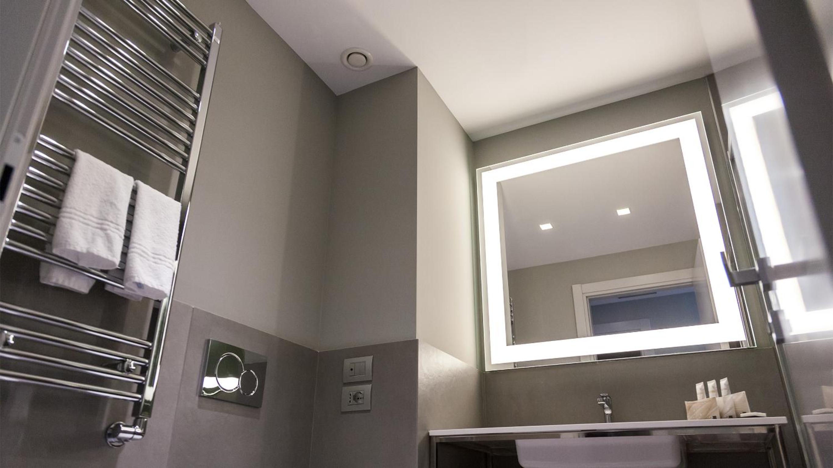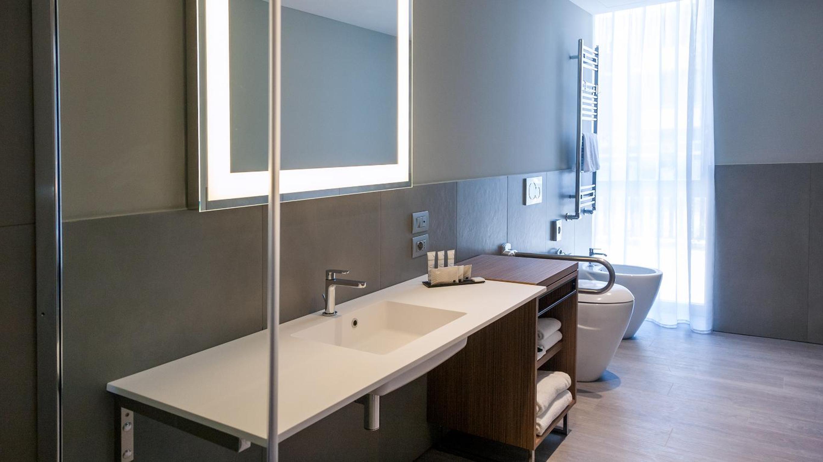 Camera moderna e pulita con tutto il necessario…doccia grande e a raso, molto comoda. Colazione nella media, con varietà di prodotti e buona qualità