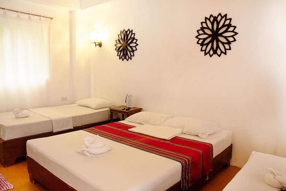 Location is very good, very close to white beach bIt that’s where the positives end. We arrived at 9:30 pm having booked the reservation at Expedia, but that had no record of our reservation. I showed my email confirmation and the manager insisted I had to show him the other number, which I had none. I told him that if this is all Expedia sent in the confirmation that I should not need another number. He sent someone up to room and then appeared to be stalling, when I asked if there was something else we were waiting for, he said she had gone up to clean the room. When we were finally given the key the room smelled strongly of air freshener. Right next to our “furnished patio” (a couple chairs in the hallway) was a construction site that was very loud during the day, and I’m pretty sure the workers were sleeping there. At one point they had a platter of fish baking in the sun covered with flies. After 9pm the front doors were locked and you have to wake up the clerk who is sleeping in a chair by the door. The room itself was pretty ok, no windows that open so you have to rely on the aircon, which worked well. The bed is very uncomfortable, hard as a rock. We left after 2 days to stay elsewhere. I think if the price was closer to php 1200 it would be closer to a realistic value for money.