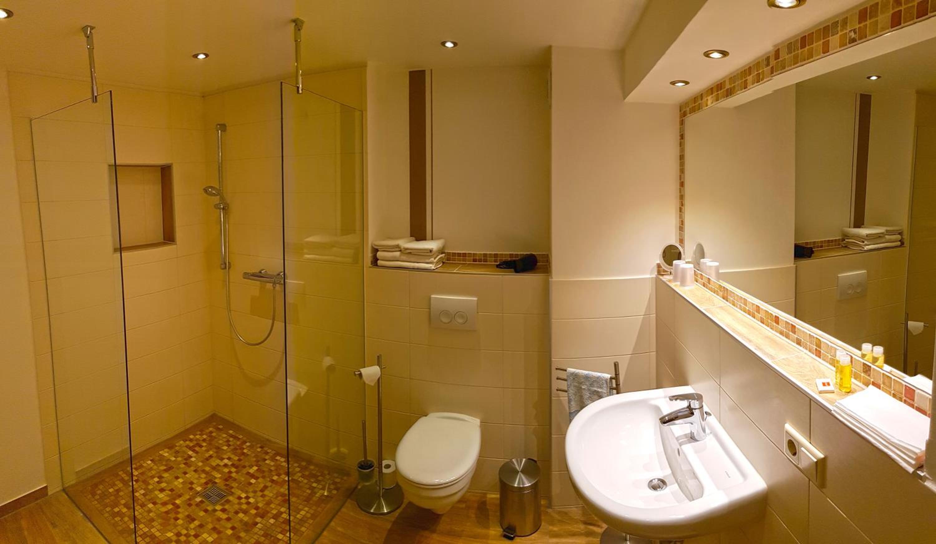 Bad und WC sehr sauber und modern eingerichtet.