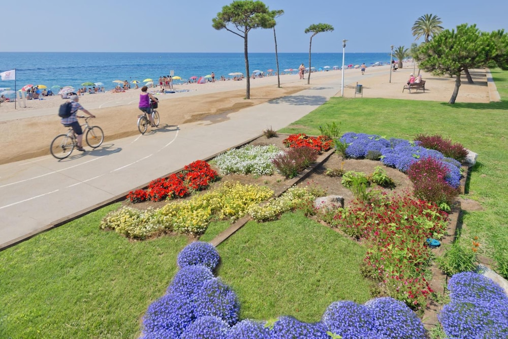 The hotel is an hour from Barcelona airport. Its centrally located and 10 to 15 mins walk to the beach and lots of shops and restaurants. The train station is also close by. We went to Calella which is one stop away, it has lots of nice alleyway shops. There's a huge market on seafront promenade every Friday. The hotel has very friendly staff and great choice of breakfast and dinner. We had a very pleasant stay there and really enjoyed our holiday.