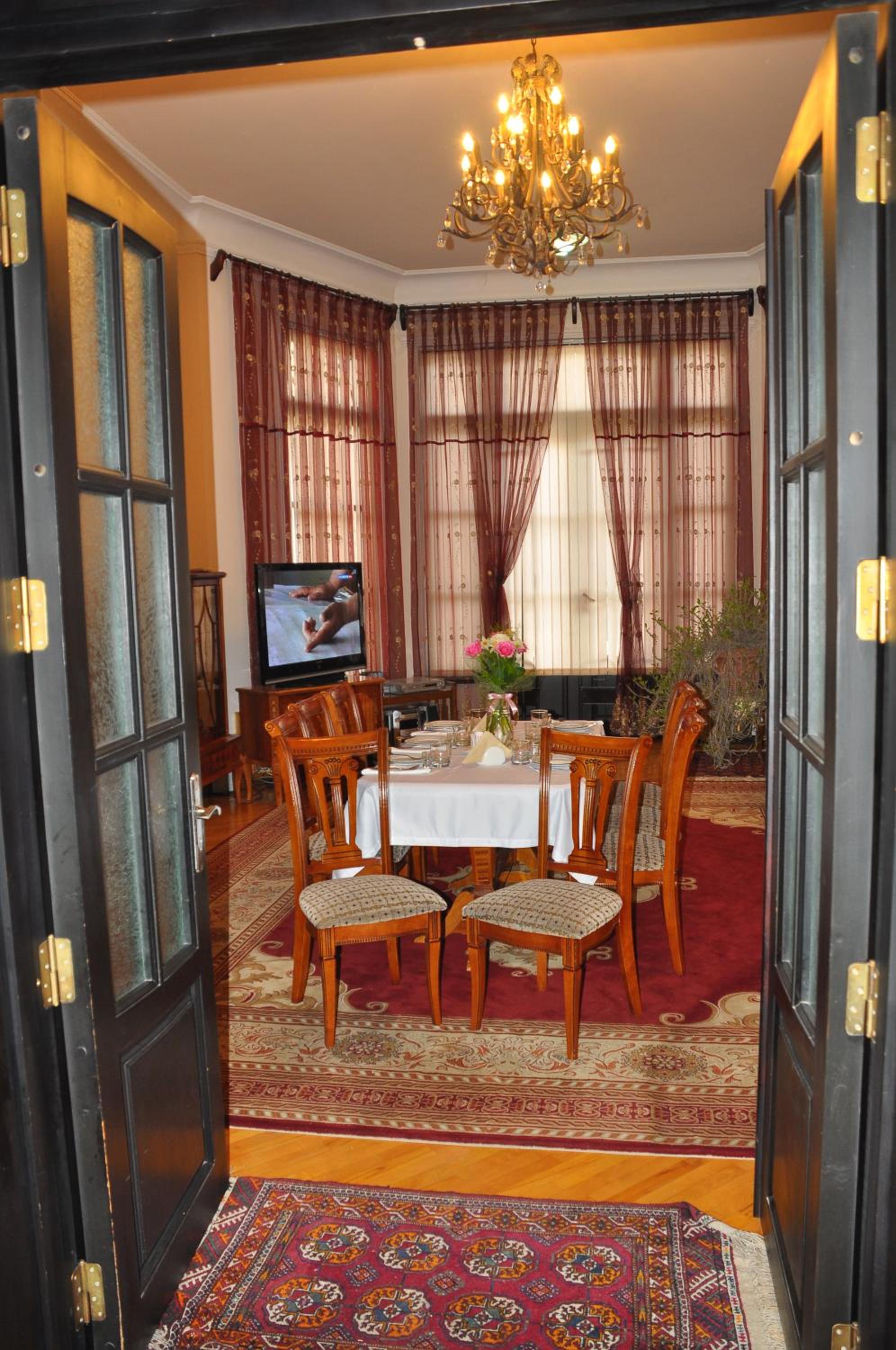 Было очень тихо даже с открытым окном, просторный номер, высокие потолки, очень большая удобная кровать.Радушные хозяева. На завтрак замечательные овощи, плюс по вашей просьбе яичница, каша, творог. Прекрасный район рядом с парком, русской церковью, 20 минут пешком до Регистана. Мы отдыхали как дома.