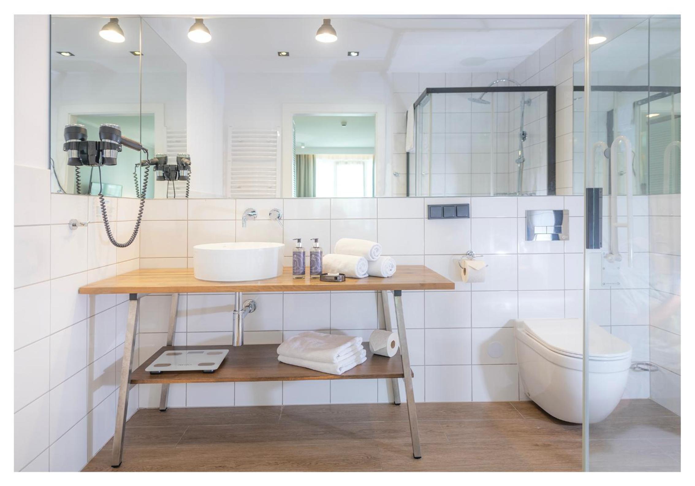 Im Bad des Zimmers war das Waschbecken nur eingeschränkt nutzbar,defekte WC Bürstenhalterung.