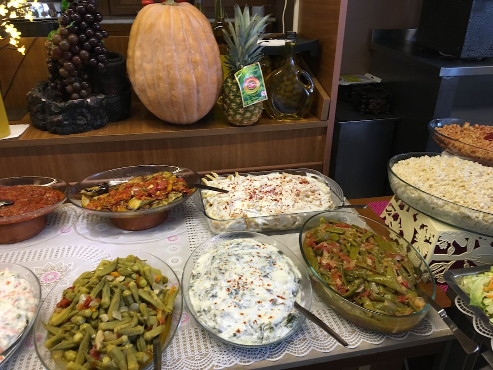 Sabah kahvaltı ve akşam yemeği açık büfe ancak sabah kahvaltıda her gün (poğaça-börek v.b) sadece 1 çeşit her gün farklı bir şey olmakta gerisi vasat kalitede peynir zeytin domates. v.s reçel yağ bal gbi şeyler iyi kalitede paket şekilde. Akşam yemeği de çok çeşitli meze bulunsa da ana yemek tek çeşit şansınıza ne gelirse alternatif bulunmuyor. Odalarımıza günlük temizlik yapılmadı biz de kısa konakladığımızdan özel talepte bulunmadık ancak bu konforu düşürmekte. Plaja yakın konumda plajda otele ait alan kullanımı gayet uygun ve deniz kumsal gayet güzel .Soğuk suya giremeyenler dikkatli olmalı Ayvalık'ta su soğuk oluyor.(25 Ağustos dahi). Denizde akıntı oluyor bu dönemlik mi bilemiyorum.Biz şiddetli rüzgara denk geldik. Çalışanlar iyi niyetli ancak anlaşmak biraz zor.