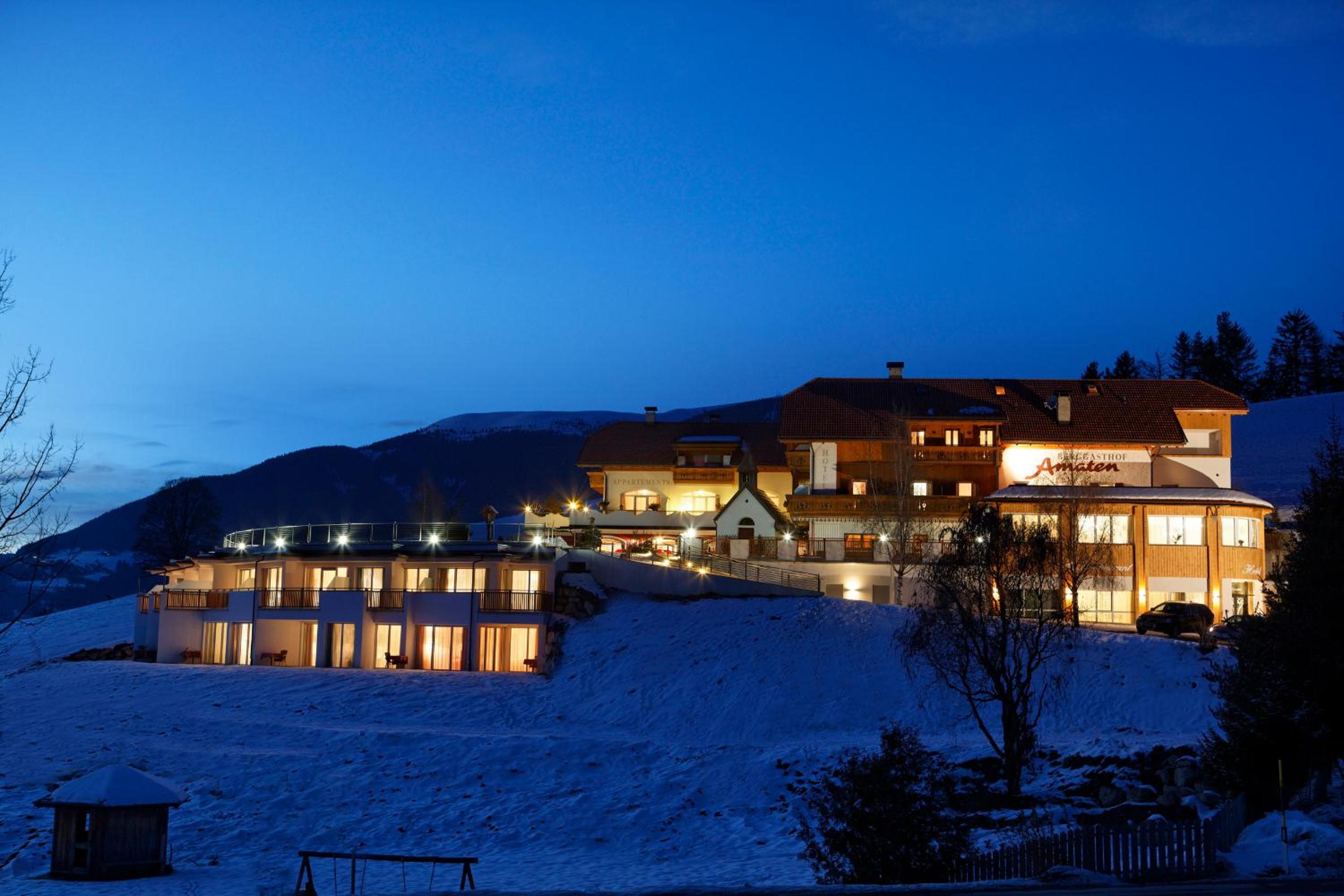 Hotel Amaten offers a serene escape nestled in the Dolomites with a picturesque garden and stunning views of Brunico. Unwind in the well-equipped wellness area during your stay.
