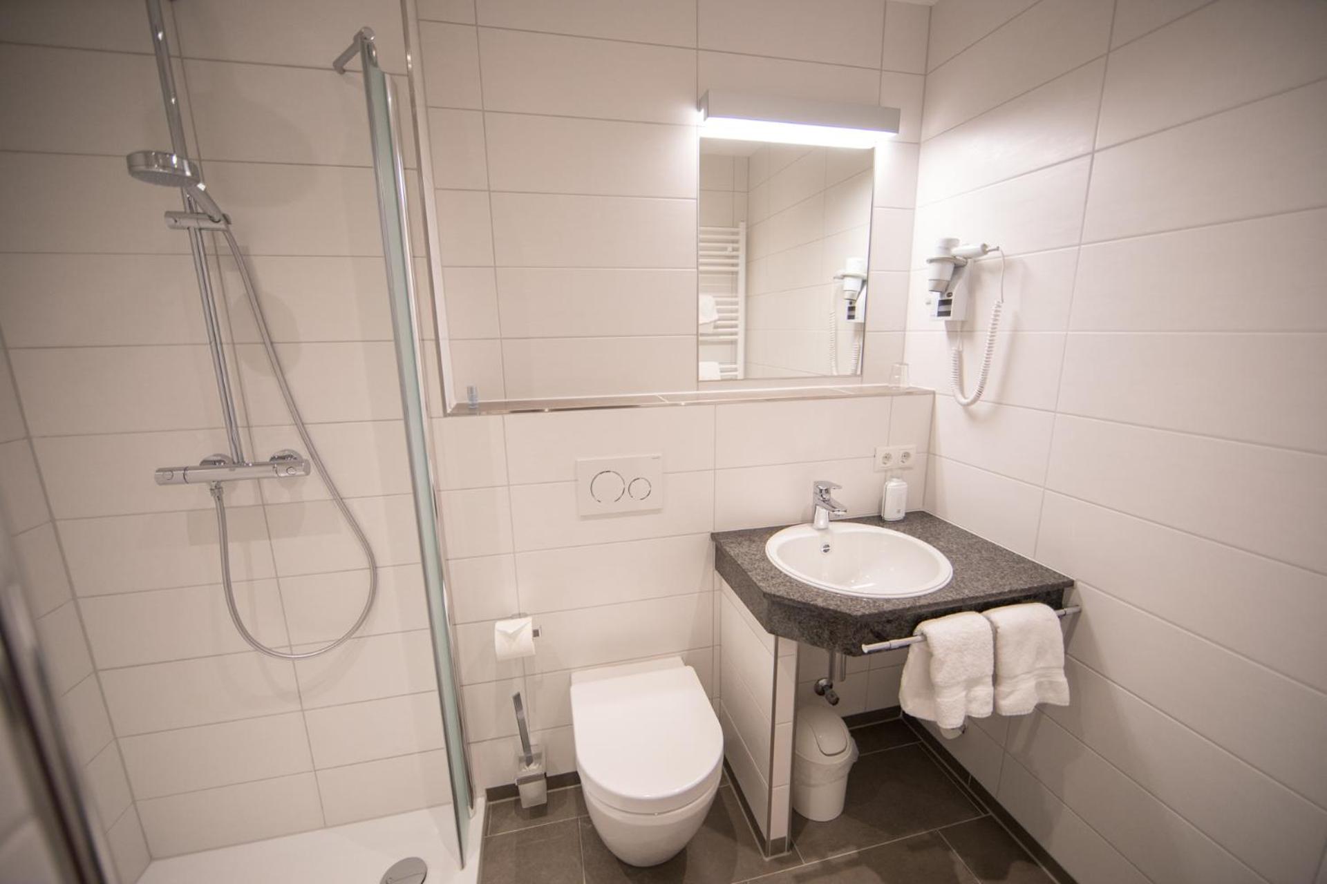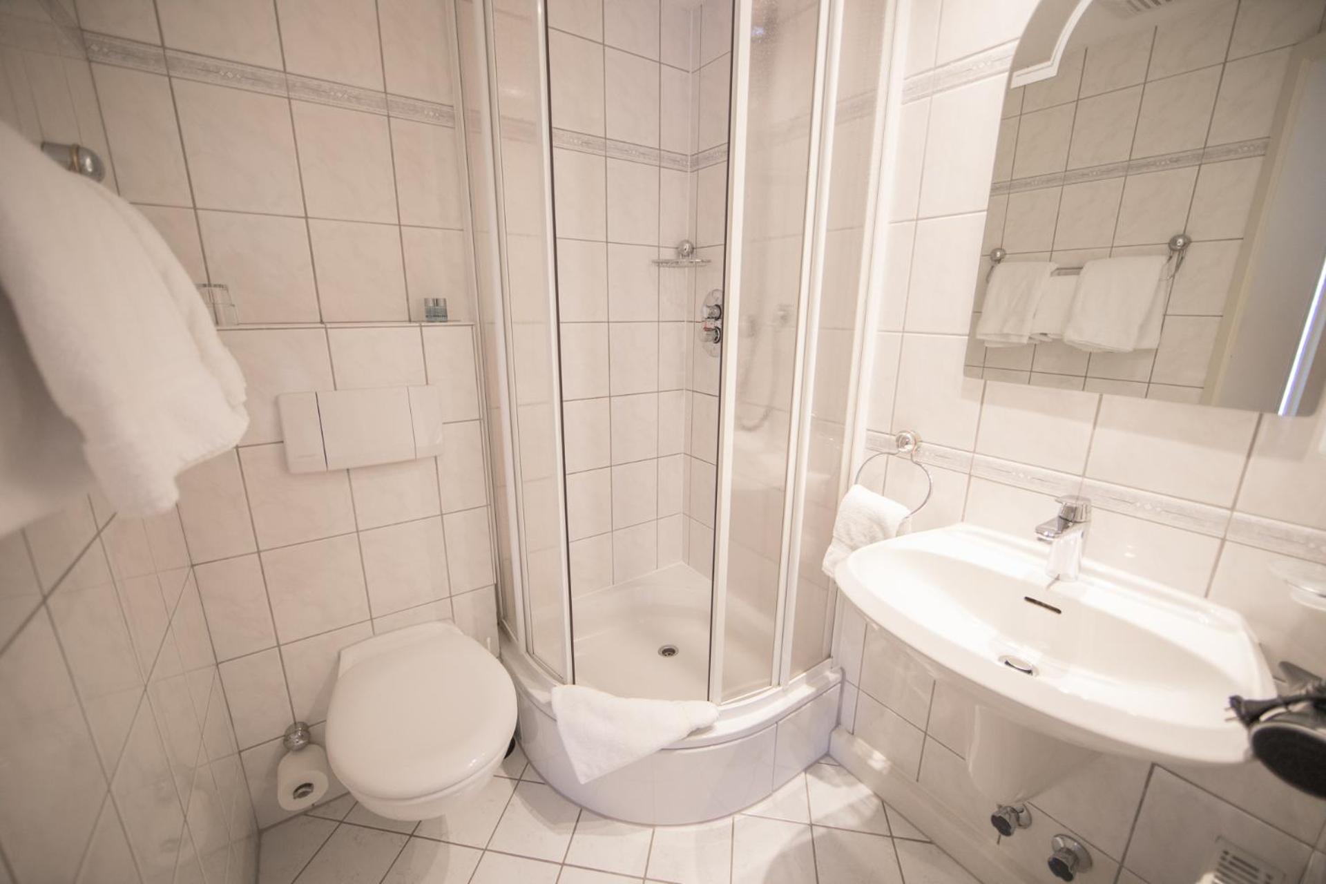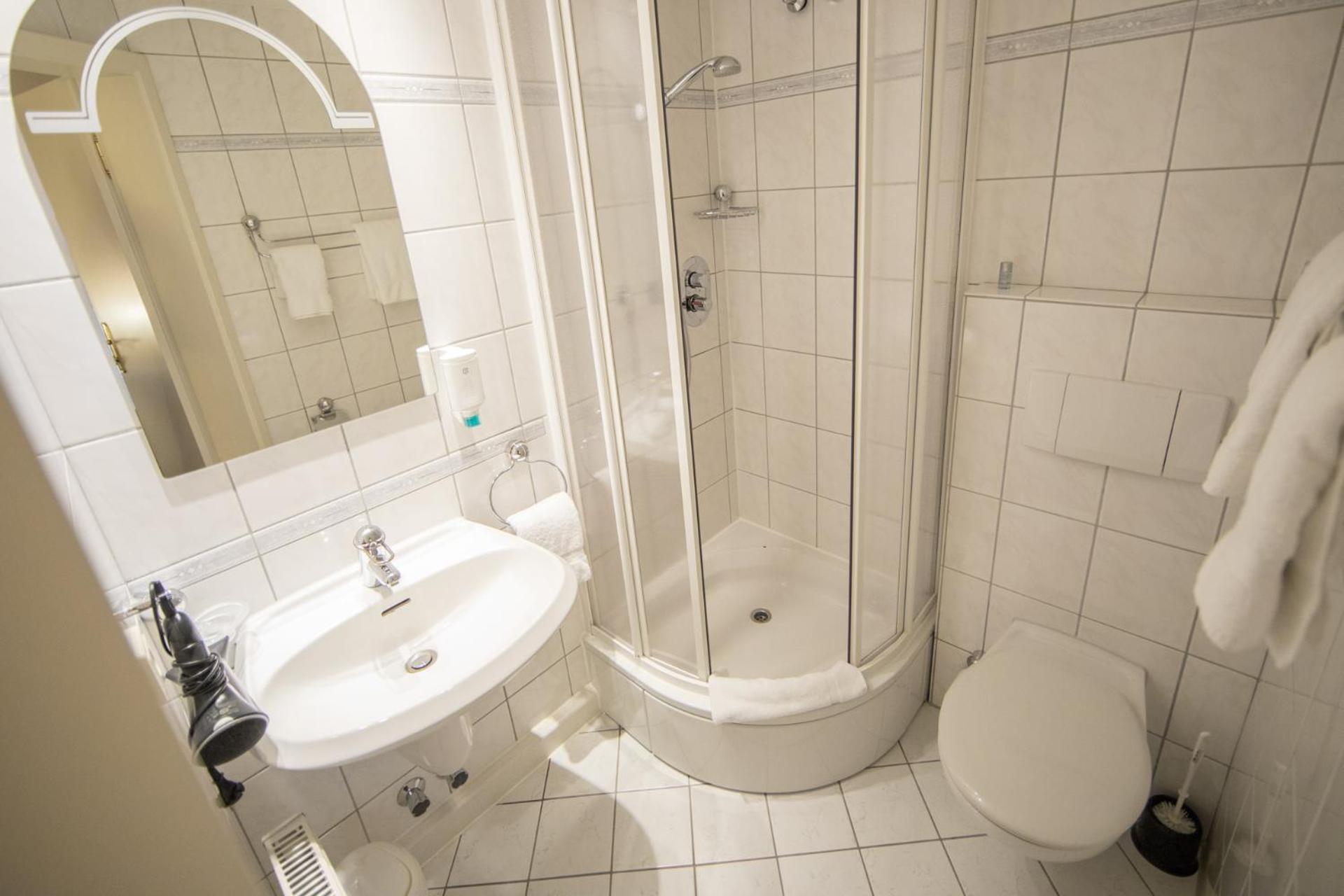 Freundliches Personal, geräumiges und sauberes Zimmer, leckeres Frühstück, nette Hotelbar. Toilette und Dusche im Zimmer getrennt, hat Vor- und Nachteile. Parkplätze direkt am Haus.
