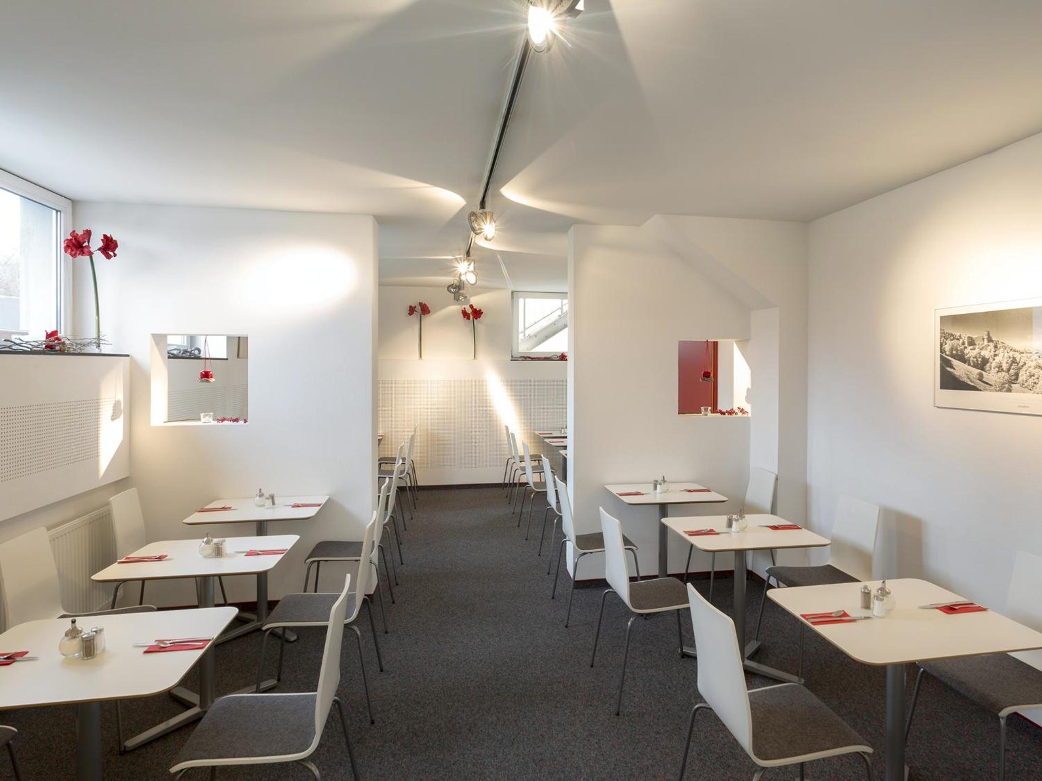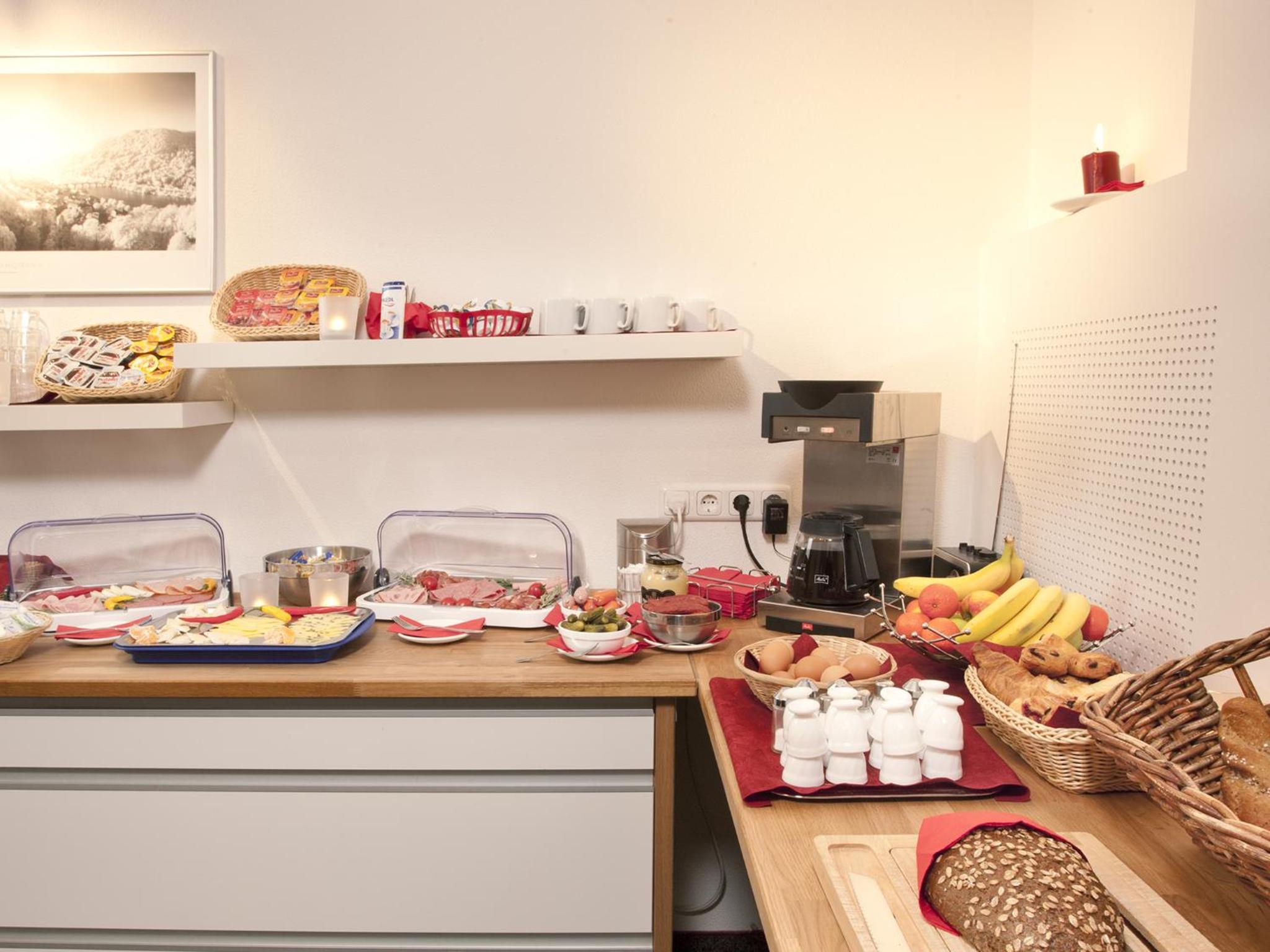 Start your day right with a delicious continental breakfast buffet available at the hotelo Heidelberg. Additionally, guests can conveniently purchase snacks and drinks at the hotel's reception, perfect for a quick bite or a refreshing beverage.