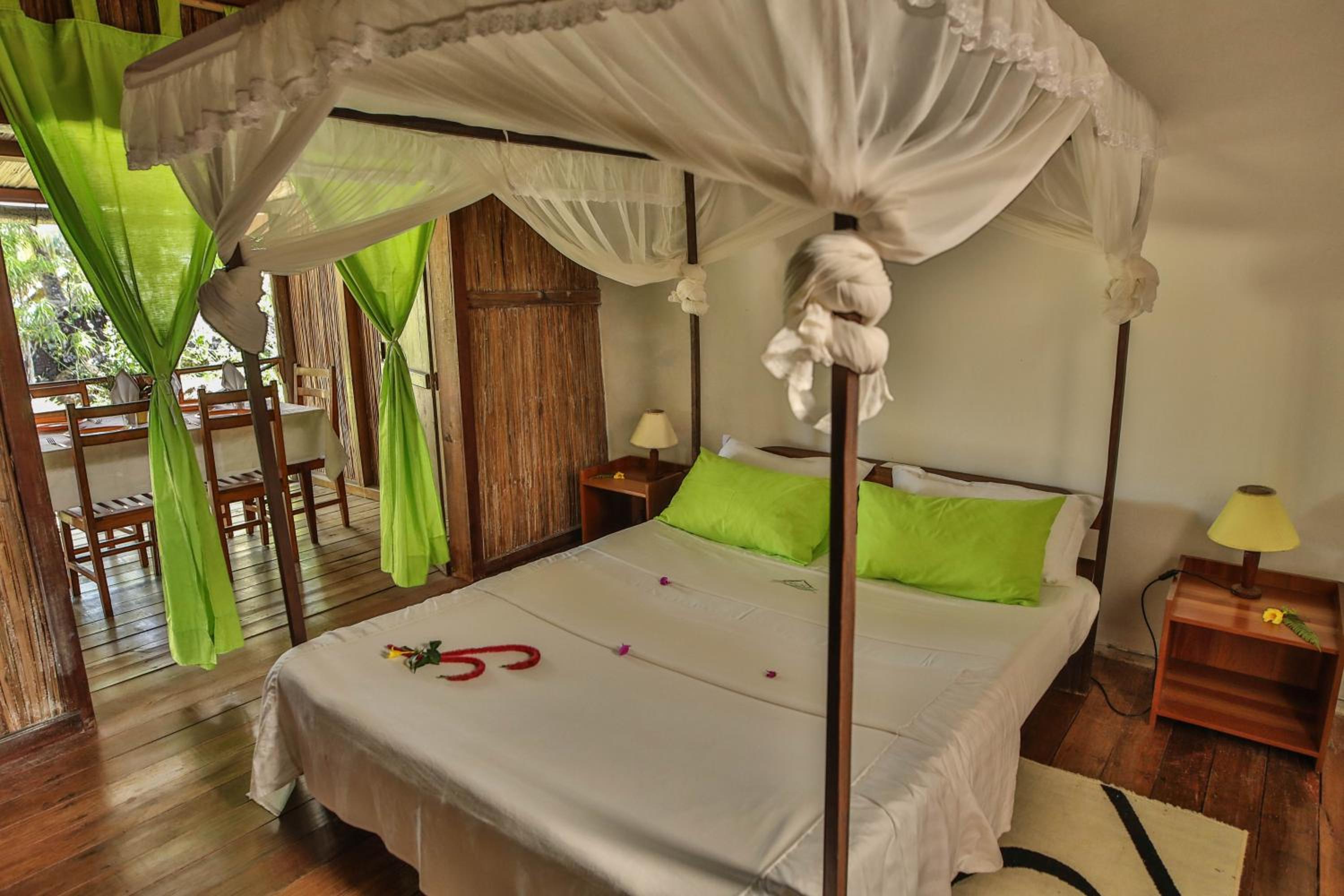 Nous connaissons l'établissement depuis 2023 où nous avions été accueilli par l'équipe et Ermes A. Nous avons réservé sans hésiter pour une semaine pour nous y rendre en famille et avec des amis. Plein de surprises nous attendaient : changement de propriétaire, Matis R., des aménagements différents et des bungalows rénovés apportant un confort supplémentaire (si vous avez l'occasion de bénéficier d'un logement rénové) : décoration, matériaux de qualité. Entouré d'un très bel espace de verdure pour se promener et de la petite anse /lagon qui permet d'effectuer des baignades ou des activités (kayak, Badel, snorkeling), c'est vraiment un bel endroit pour se reposer. L'établissement sert un petit-déjeuner continental optionnel tous les matins et une formule demi-pension qui existait auparavant que nous avons acceptée, pratique, car le Natiora lodge est plus au nord. Le menu propose des plats pour tous les goûts (dont végétarien). Un restaurant se construit à l'endroit où se situait la paillote des équipements nautiques. Les activités habituelles sont proposées (sortie baleines, yoga...) et quelques animations très sympathiques sont également proposées : concert, danse, et ateliers avec les habitants de Lokintsy (10 minutes à pieds.). Le personnel (serveurs/serveuses, barman, femmes et hommes d'entretien) est très gentil, professionnel et attentif. L'équipe administrative est serviable.