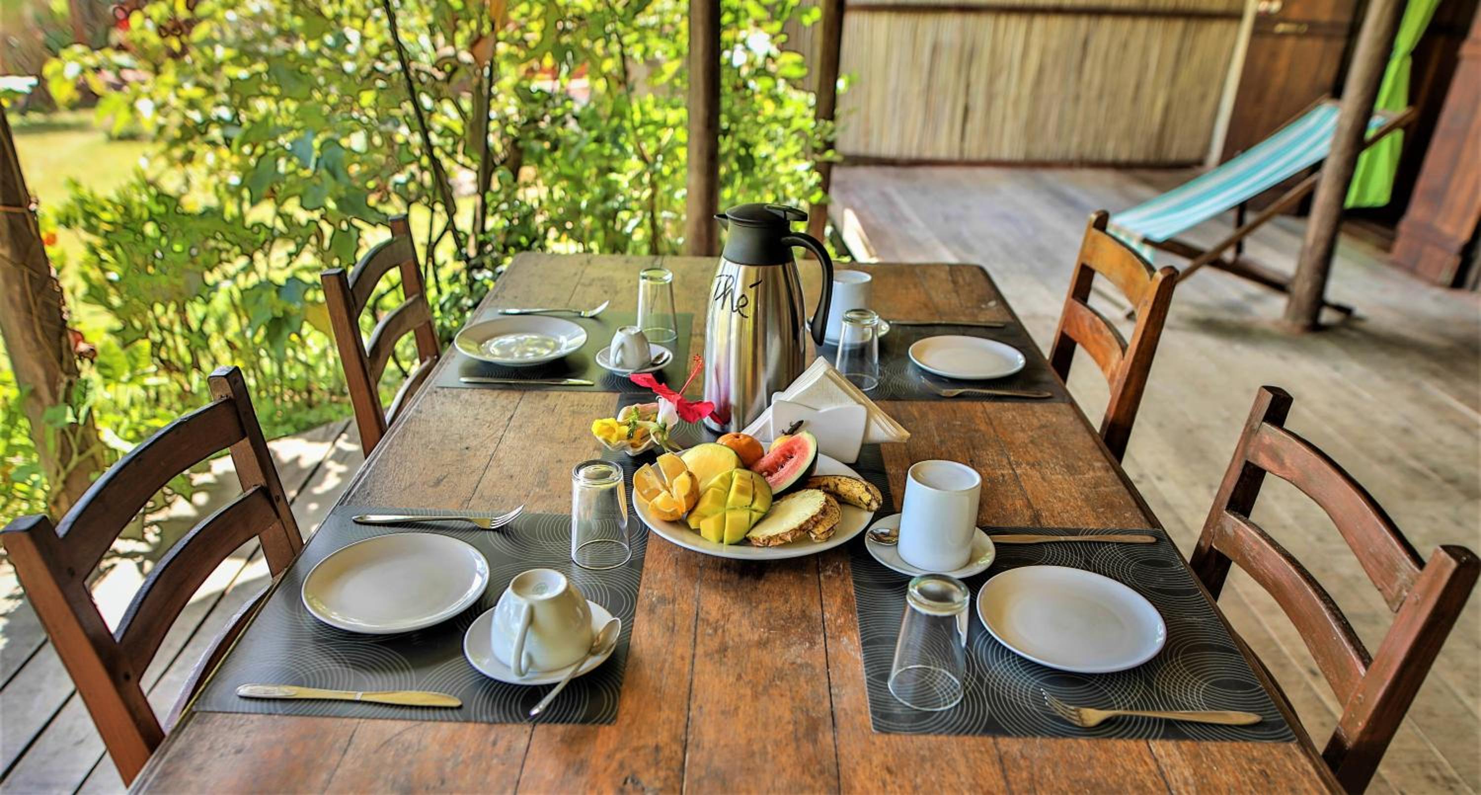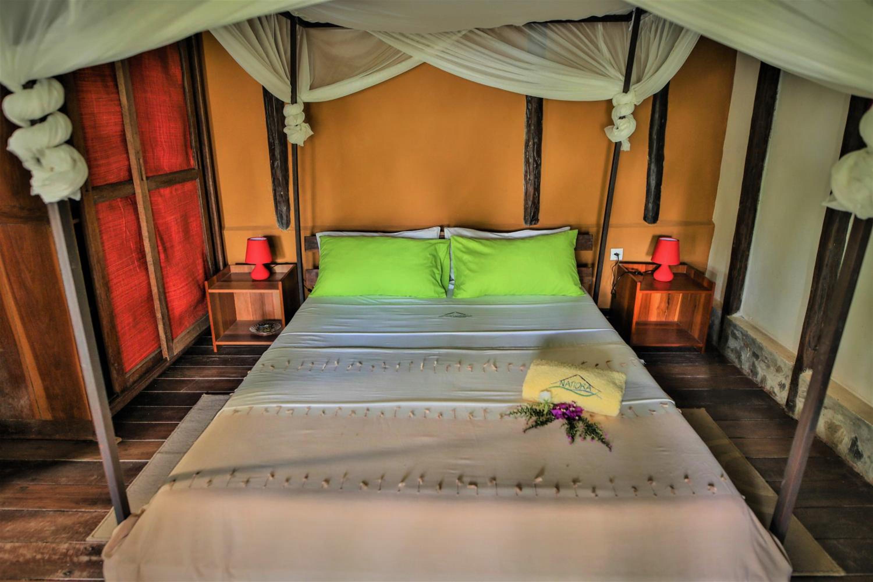 La rénovation des bungalow n'étant pas achevé, nous avons joué de malchance puisque le bungalow familial que je pensais avoir réserver (celui à côté du bungalow 1) n'était pas disponible et que nous avons eu le bungalow n°10. Ce dernier est encore dans son jus Natiora première époque et bien que la salle de bain et les toilettes aient été refaits, il y manquait beaucoup de luminosité : pas de fenêtres vitrées (uniquement des moustiquaires et des volets). La literie au départ n'était pas satisfaisante, un lit a été changé car l'équipe a été réactive. Les améliorations et différents changements éloignent l'établissement de son côté écolodge/roots (on dormait avec un hibou à l'époque) et entraînent une hausse des tarifs (environ 40/60 euros la nuitée par personne avec petit-déjeuner compris, prix différent avec la demi-pension et non par chambre) et qui se stabiliseront certainement dans le futur.