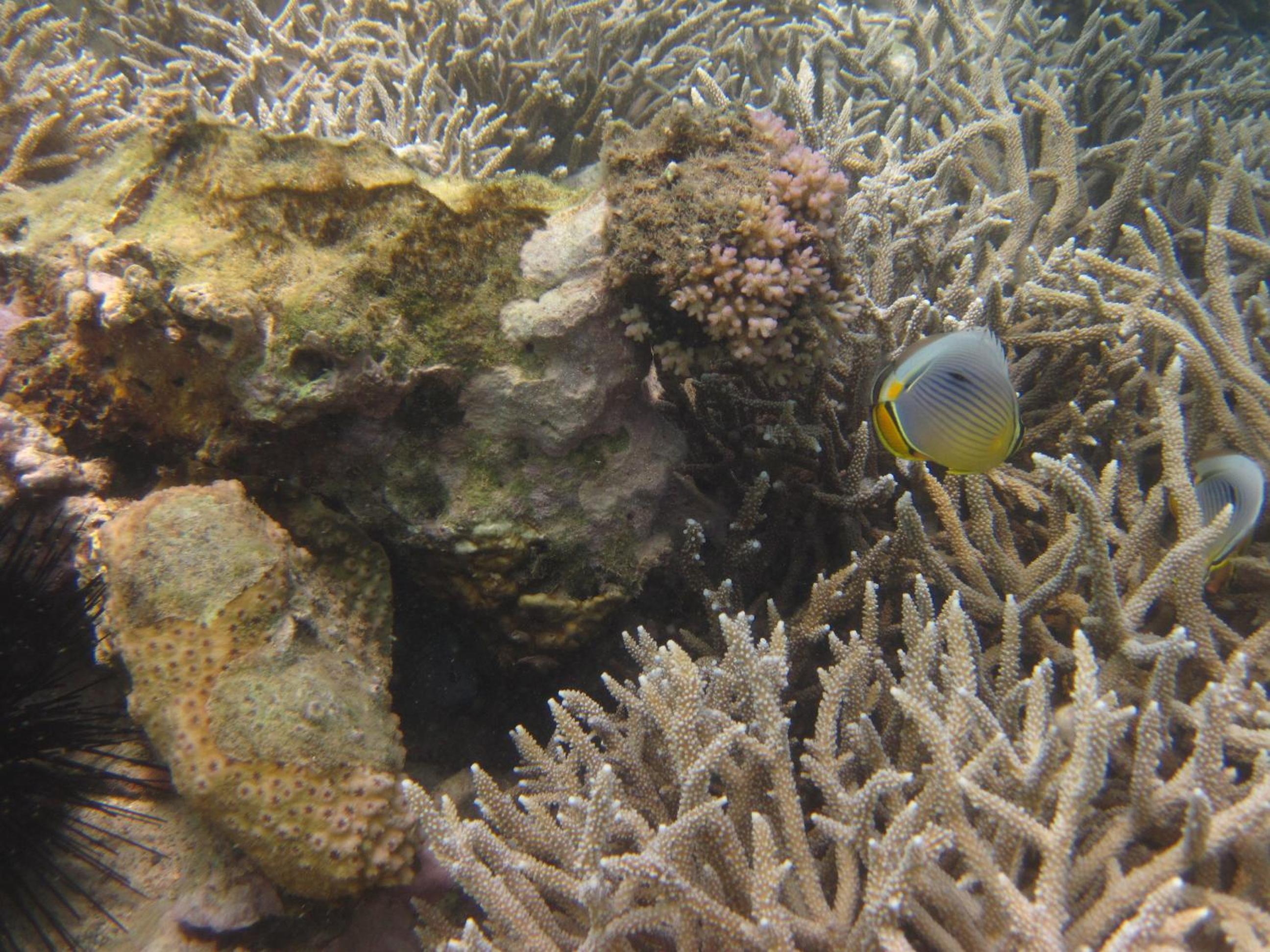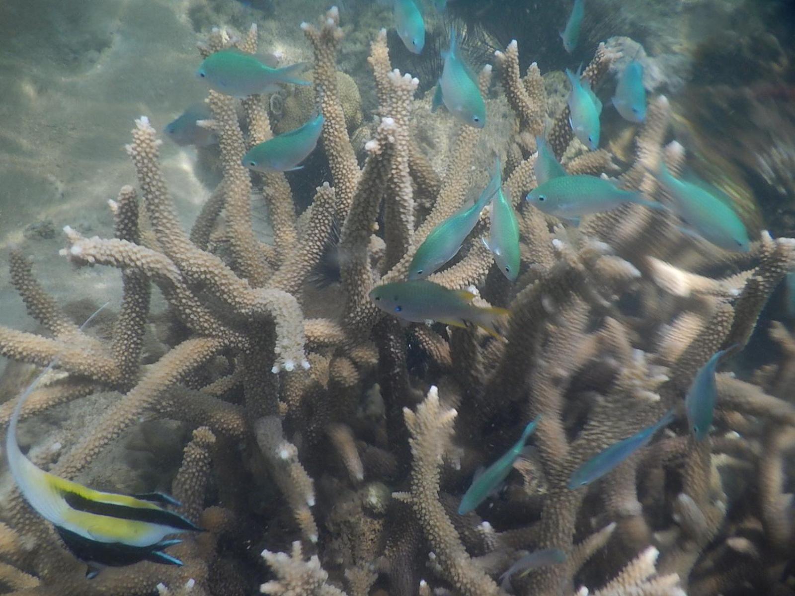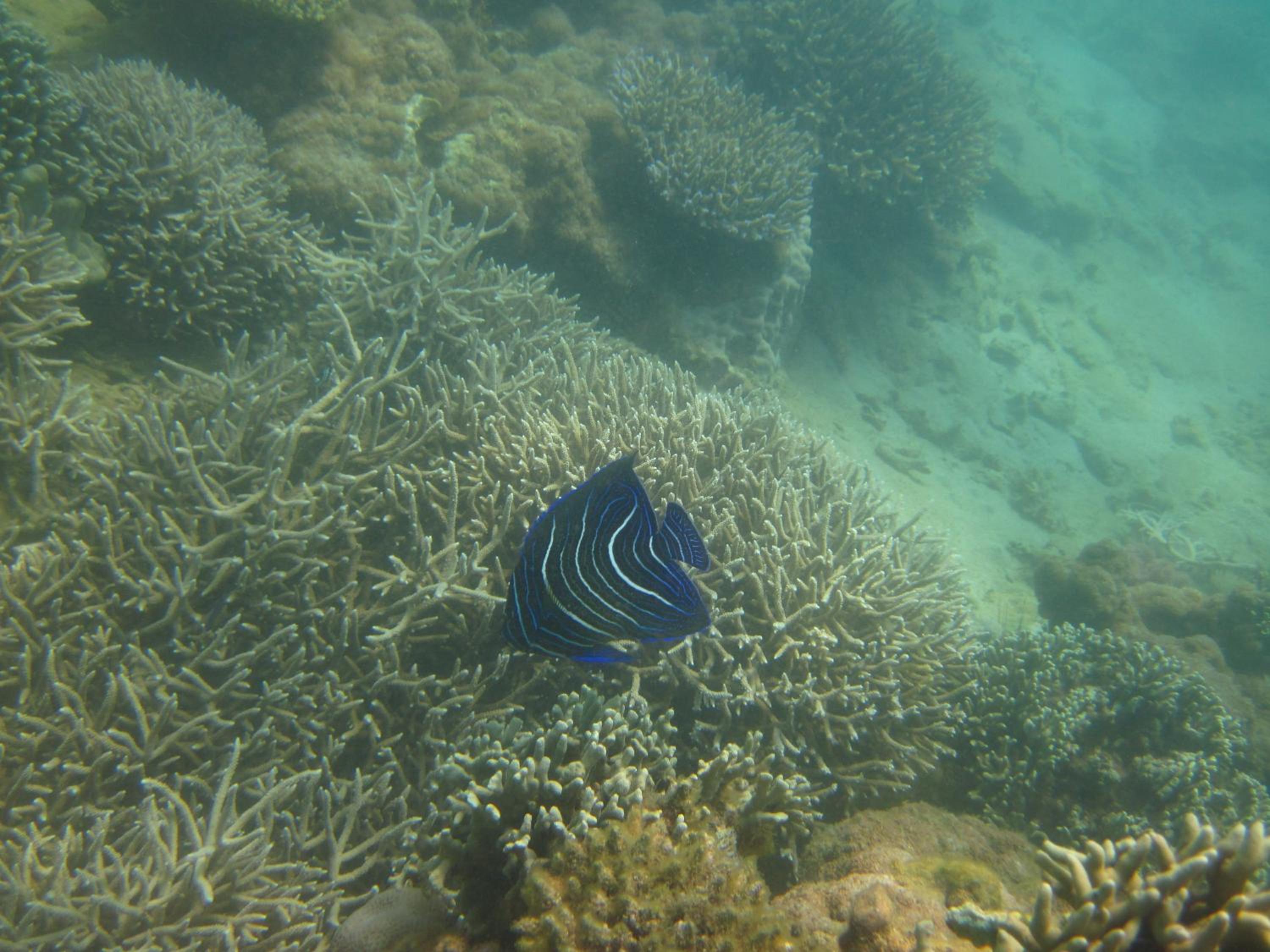 Absolutely beautiful outsides. Picture perfect, like living in a postcard. You are able to see whales from the beach. Opportunity to snorkel - bleached corals, but still a little sea life. E.g. a lion fish. Room is fine, with a nice view. Food tastes perfectly fine. Not the best pizza. Sweet dogs.