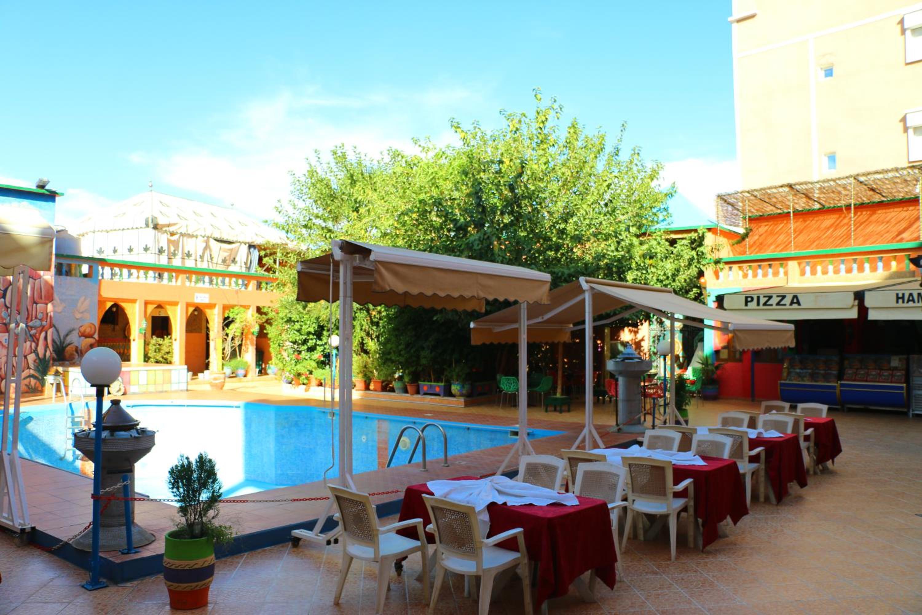 Hotel Espace Tifawine in Tafraout boasts an inviting outdoor pool where you can relax and unwind, complemented by a delightful restaurant offering delectable dishes for a memorable dining experience.