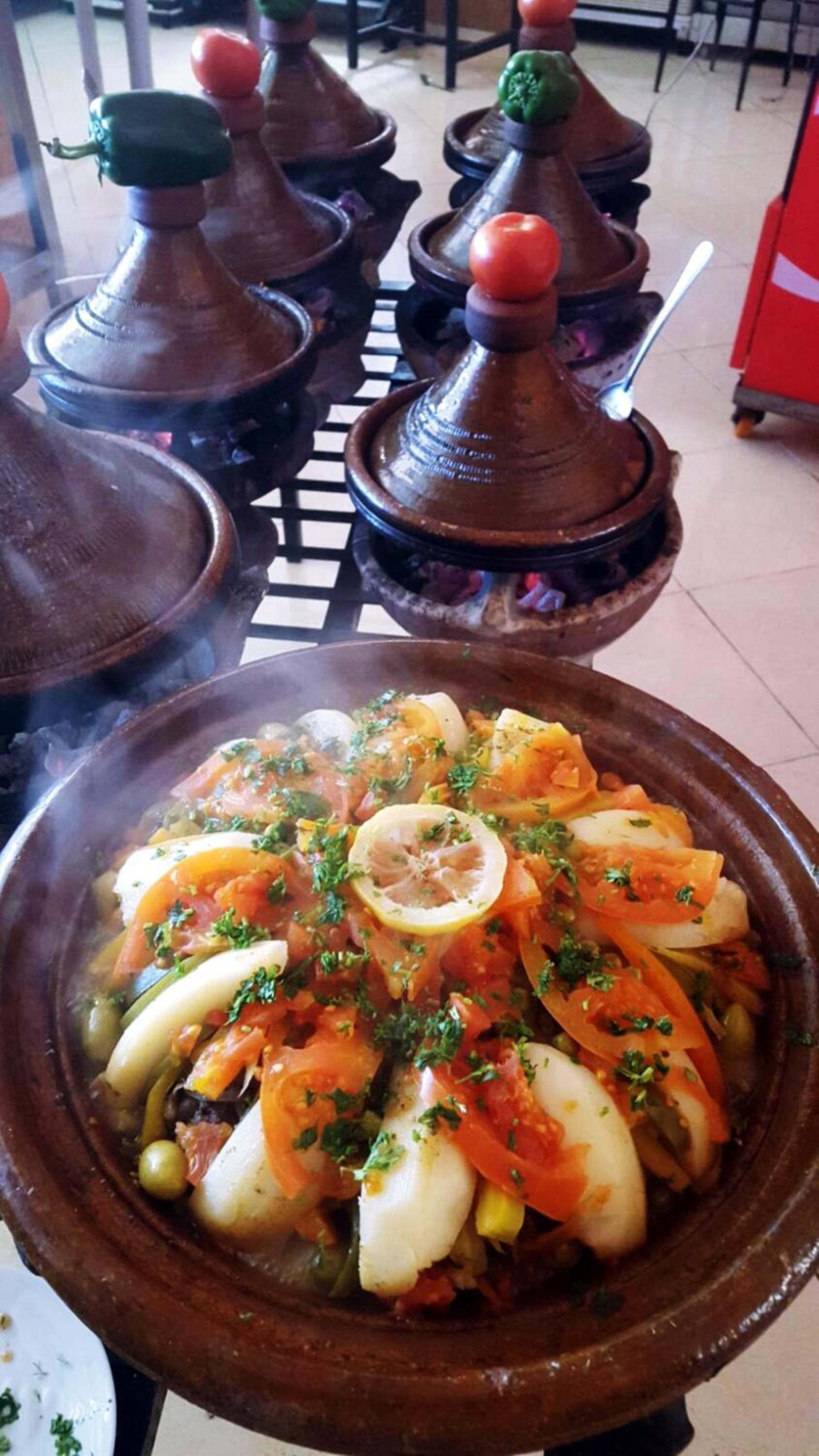 Ar y brif ffordd gyferbyn a’r kasbah. Pell nofio a bwyd ar gael