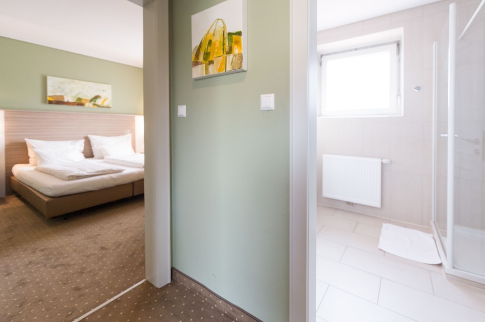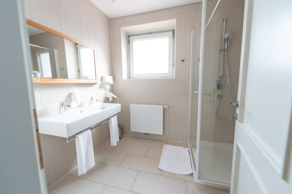 Sauberes und modernes Bad, gute Lage, gutes Frühstück.