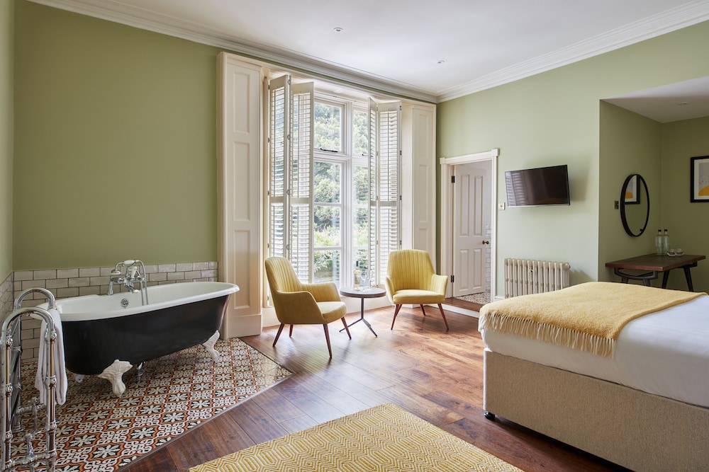 Lovely house and grounds with lots of history, good parking although only 1 EV charger that only runs at 3KW thats if you can park by it because other less considerate guests park on the bays with non ev cars, the rooms are well appointed and clean although we were given Room 4 upstairs despite asking for a ground floor, the room smelled of cooked meat due to the kitchen extraction fans being outside the window, the bed was very uncomfortable, i ended up having to use a walking stick the next day due to a stiff back, they did move us to a ground floor room the next day to be fair but the bed was the same, breakfasts were hit and miss, the full breakfast looked good but the black pudding was an aquired taste, the hash brown or rostie whatever it was fell apart and sausages weren't very good, the continental breakfast was not comprehensive, cereals, a couple of different pasties, meat and cheese slices and pots of yoghurt if there were any left, the filter coffee is bitter, any other option costs extra, apple or orange or water only, we ordered tea which we waited 25 minutes for and gave up and left in the end.... when the heating is on the rooms are like saunas and the water is red hot... the heaters are on or off so rooms hot or cold, the bar is noisy in evenings and only sells 2 lagers and No beer but lots of wine, wouldn't stay again....
