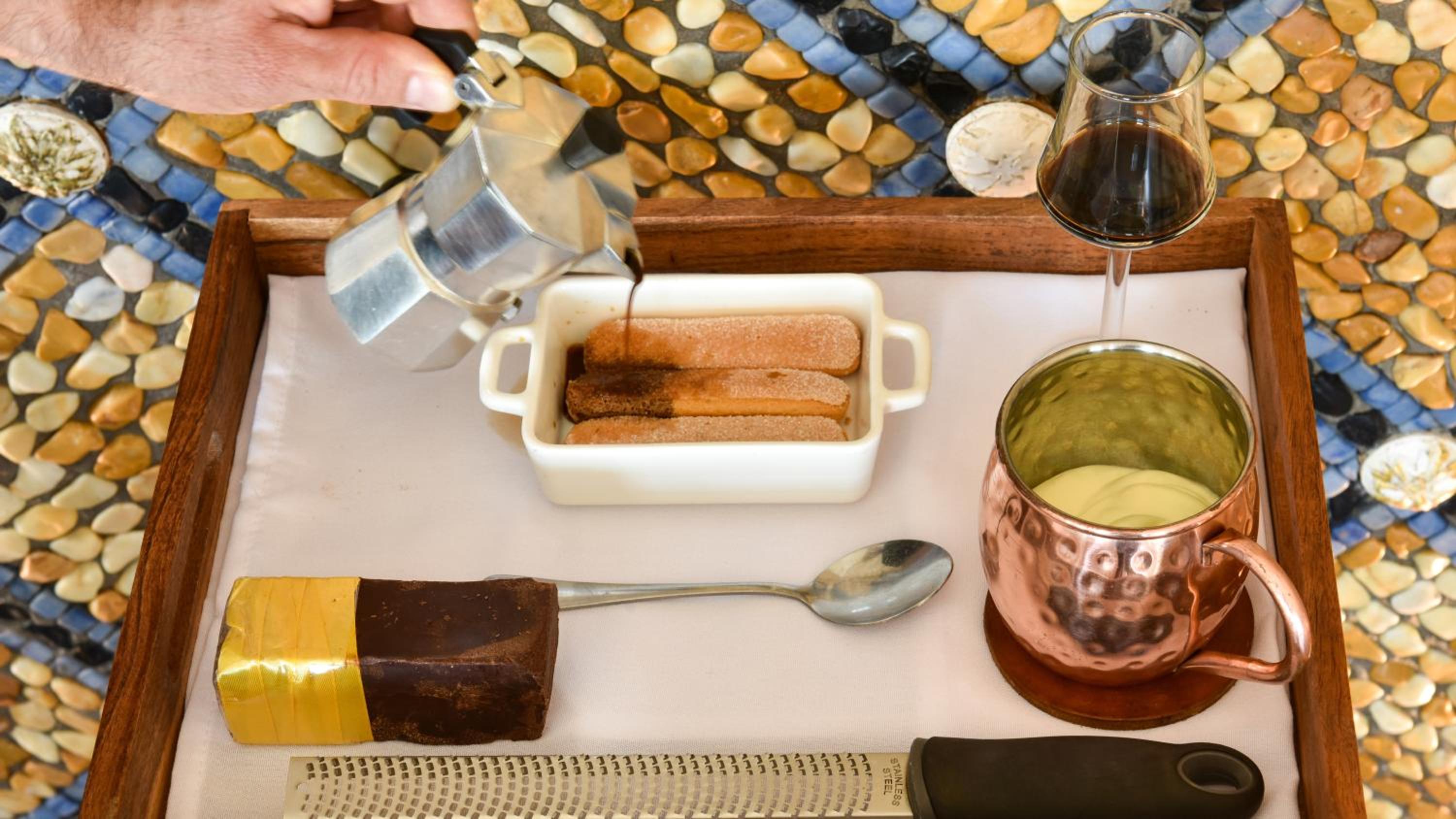 The pool was a major attraction but once there, it is in the busy restaurant, and pretty hostile to potential bathers. Really wish we could have used the mosaic pool, but with no wear to discreetly disrobe, towel off or even sit while being watched and photographed by diners - that is nightmarish.