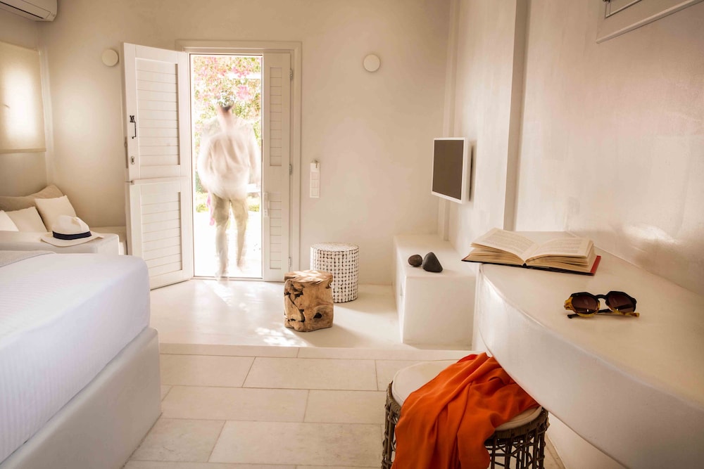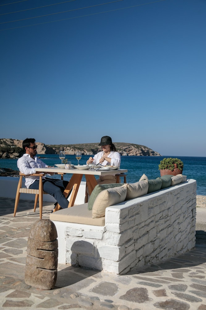 An absolute gem, fantastic airy room with lovely bathroom and to-die-for balcony, completely peaceful location with stunning views of sea and islands to the east and beautiful mountains to west, lovely private beach with crystal clear water. Beautiful pool if needing a break from beach. Service outstandng service and friendly help from Loulou and Stamos with anything needed from car rental to Covid tests! Extremely high standard of food, including the most amazing Fava and Taramasalata we've ever had. Cn't rate the place highly enough.Really hope to return!