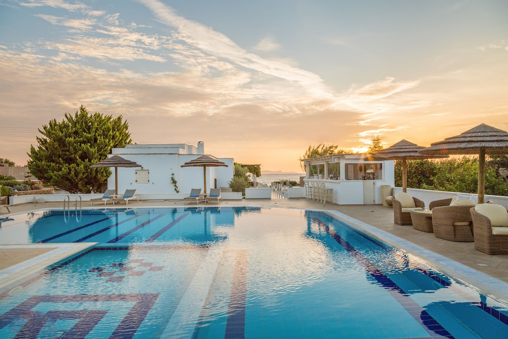 Immerse yourself in the beauty of Naxos at Ostria Inn with an outdoor pool, terrace, and garden for relaxation.