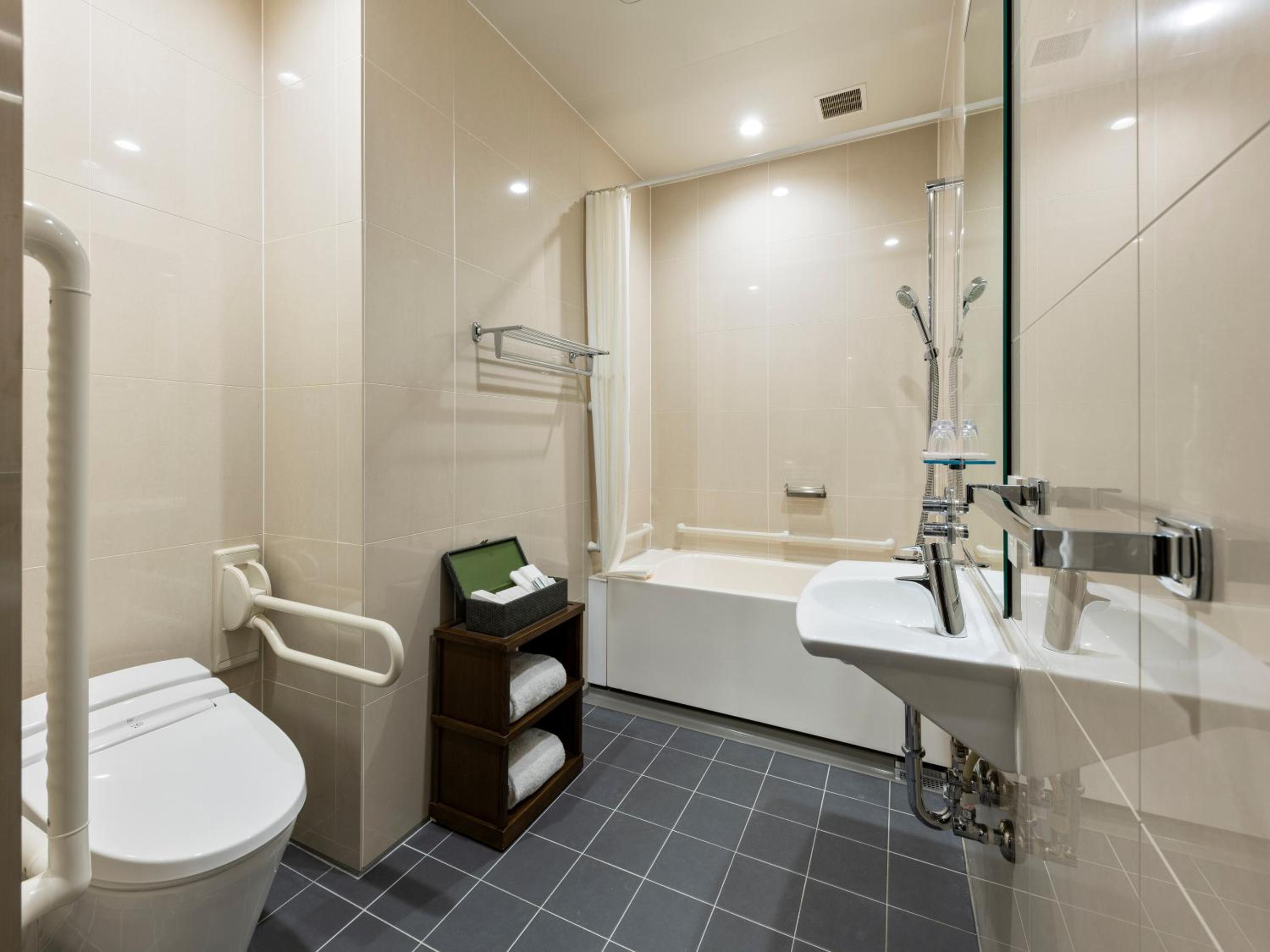 Very easy access to Shinbashi station, Ginza station and Ginza shopping street. The staffs are very helpful, they help us with the luggage and catch the taxi. Separate bathroom and toilet.