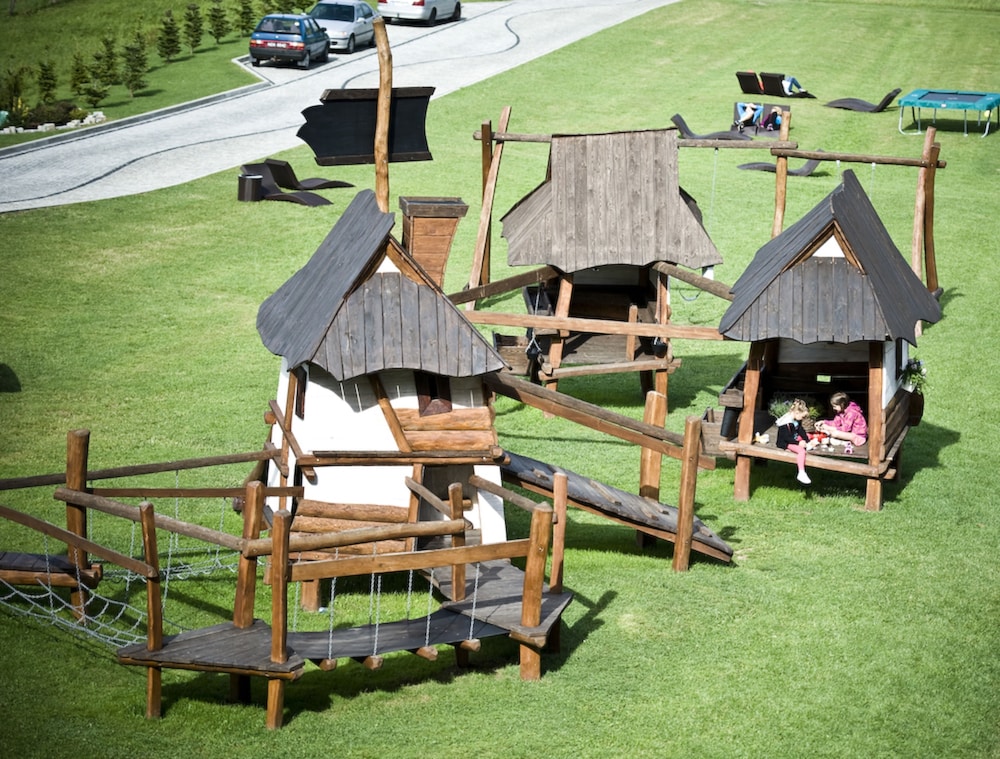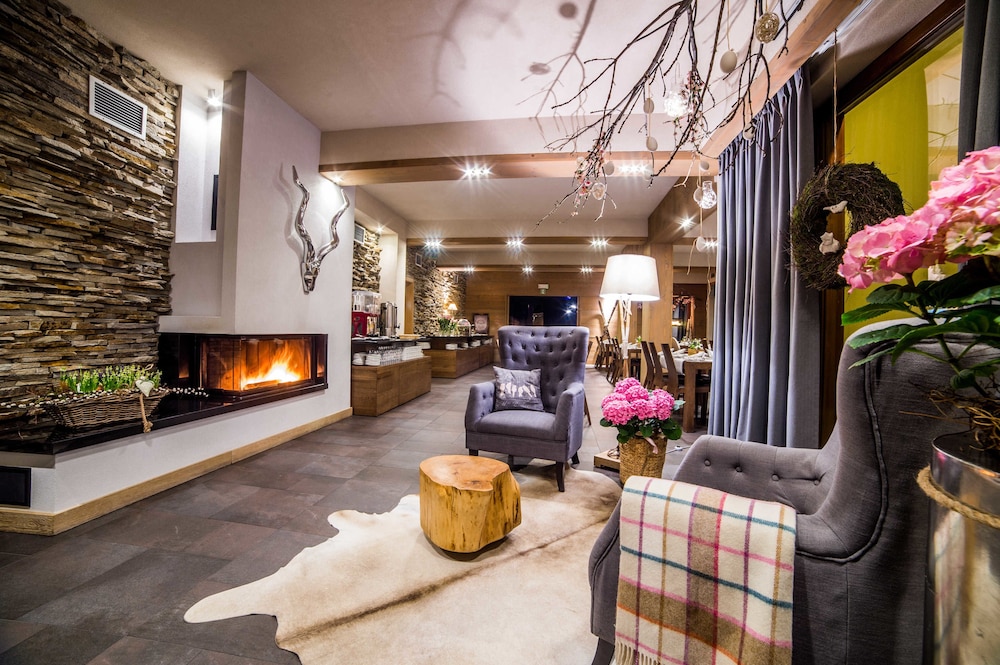 The hotel is a beautiful lodge in a great setting. There are views of the tall mountains on one side, ski slopes on another side, and smaller hills the other directions. Great breakfast and dinner at the restaurant. Friendly staff. We enjoyed watching the sheep grazing on the summer grass on the ski slopes. The nearby Terma Bania water park was much fun. We highly recommend this hotel.