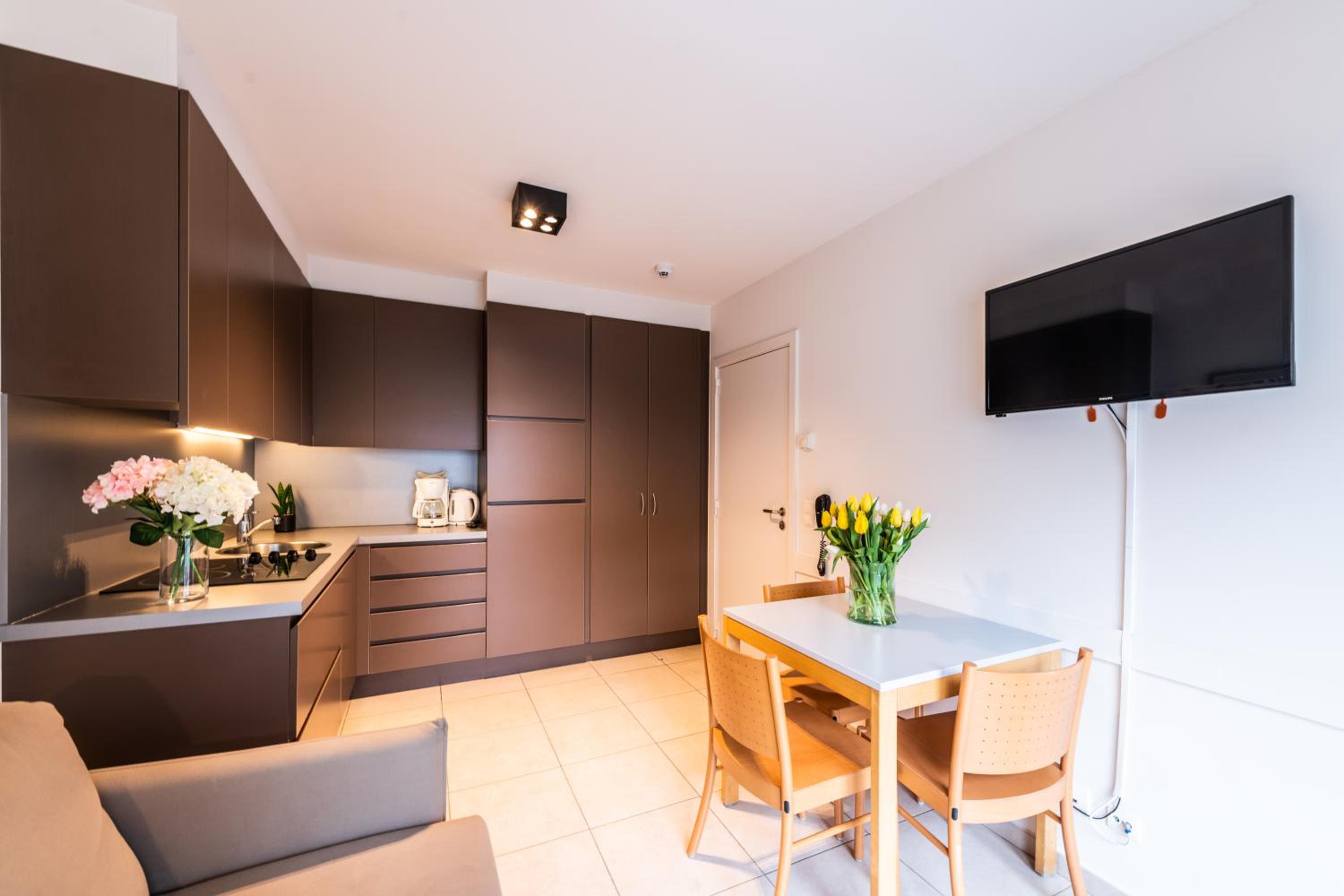 Belcasa Suitehotel in Westende Bad features modern suites with a separate bedroom, open-plan living area, and a balcony. Each soundproof suite includes a fully-equipped kitchen with an electric hob, microwave, and refrigerator. Relax in the comfort of your own space with a sofa and TV provided in each suite.