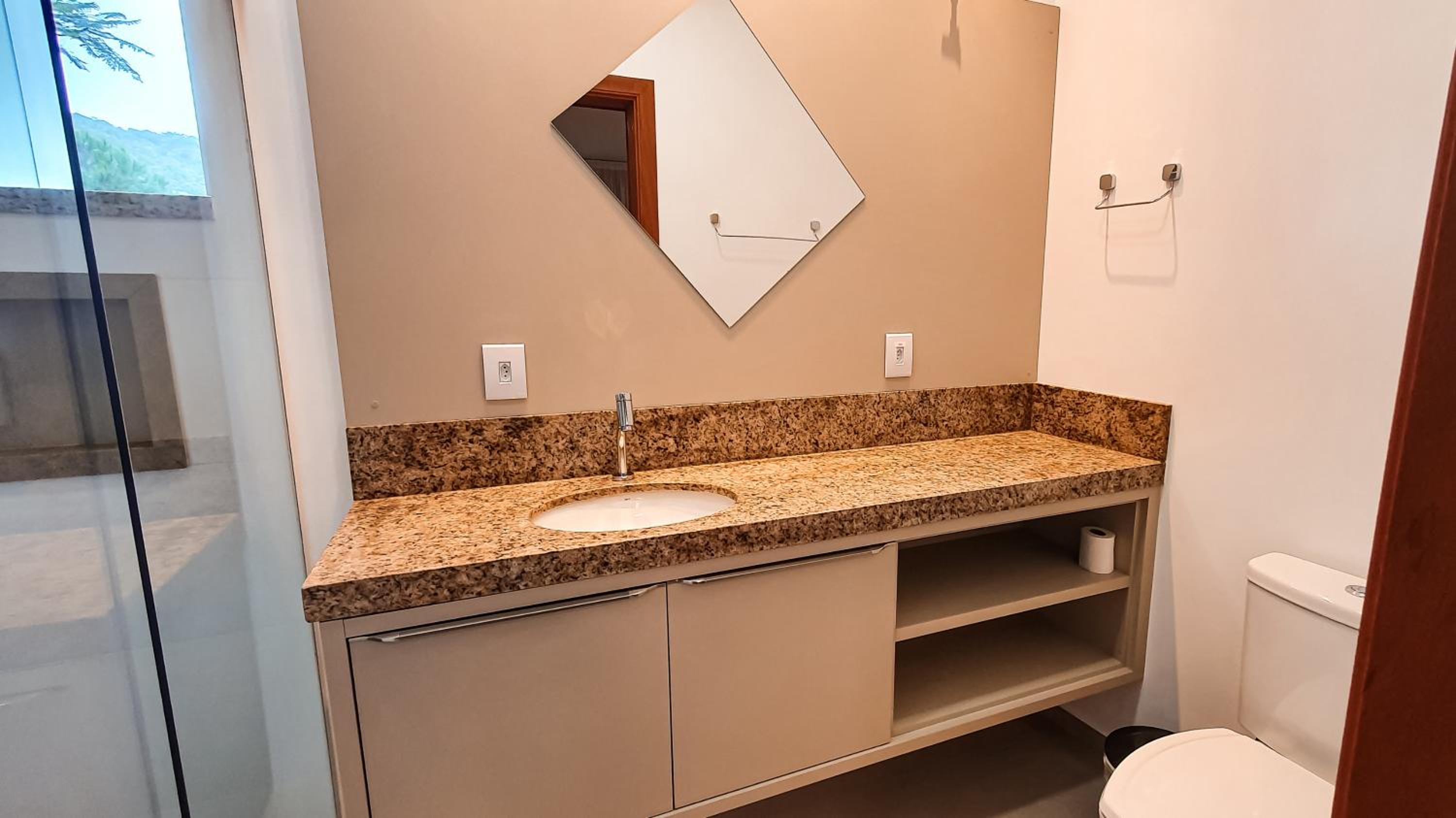 Falta de ducha higiênica e ganchos para pendurar roupas