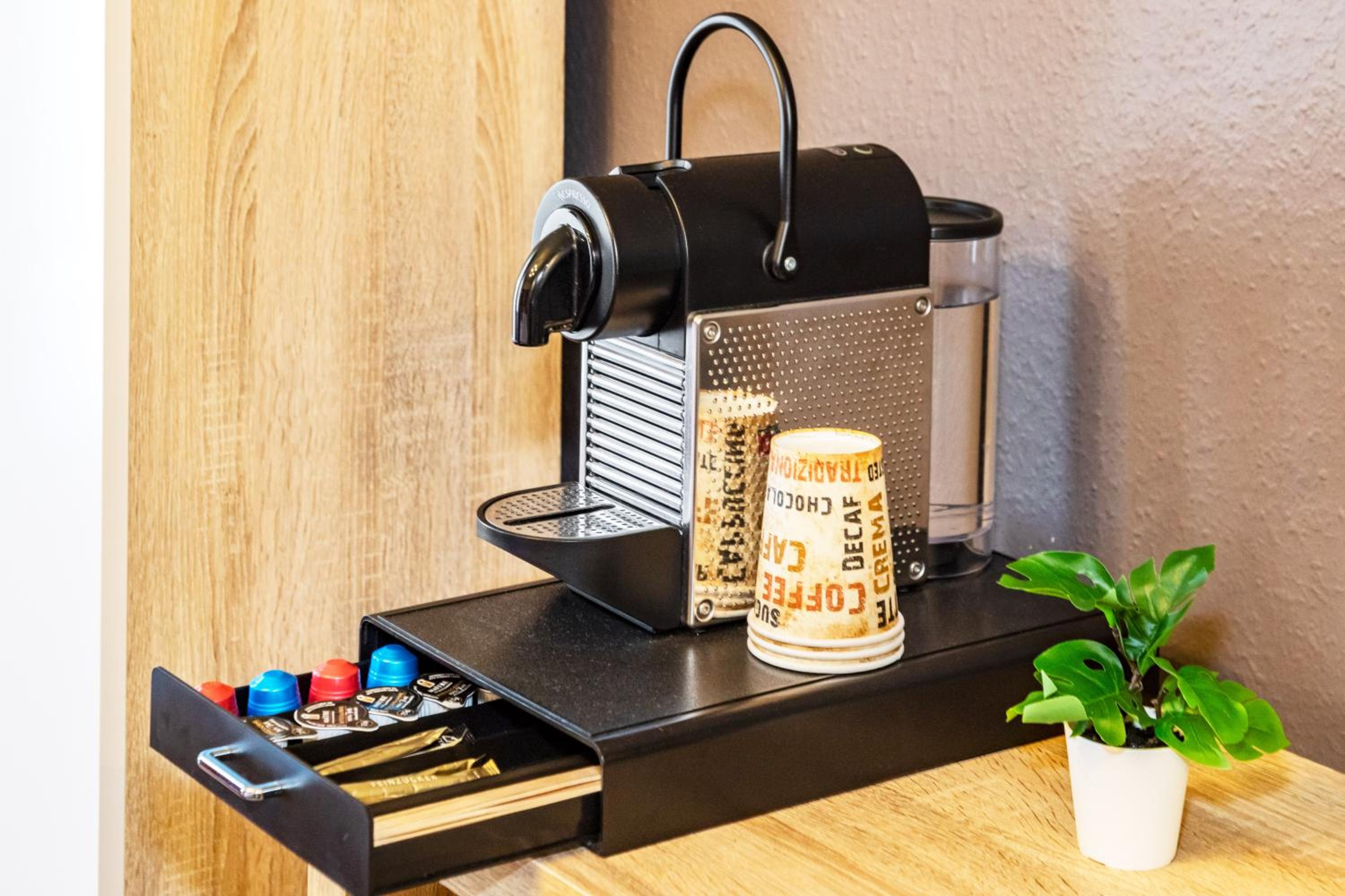 Each room is furnished with a satellite TV and a Nespresso coffee machine, ensuring a comfortable stay. Guests are welcomed with complimentary coffee capsules and a bottle of water upon arrival.
