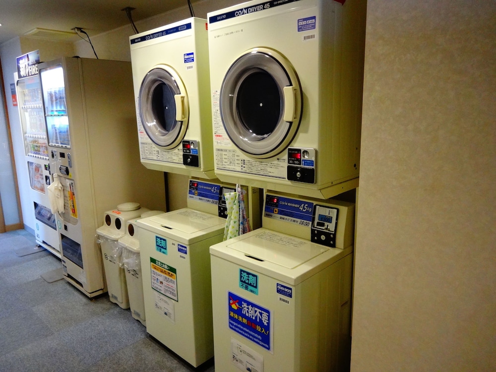 This hotel offered a great breakfast (choice of Japanese or Western food) which was included in the price but only costs 200 yen if you had to pay for it. Seating for breakfast is on the floor, Japanese style, and this whole hotel is a place where you need to take your shoes off as you enter. I had to take a smoking room but there was nothing smoky about it. Current cleanliness was fine, but the carpets throughout the hotel sure could use replacement. There was a toilet and sink in each room, but bathing is in a shared bathing room... one for men and one for women. This was not particularly appealing to me but I went with it. The main thing is to wash your body in the stool/shower area and don't get dirt or soap in the soaking tub. I did not use the soaking tub at all. I was travelling with my 6 year old daughter and thank goodness on the first day some wonderful stranger woman spent about 45 minutes of her time to help my daughter bathe. This is something to think about if you are travelling with family, as men cannot enter the women's bathing room and limited bathing hours prevent sneaking in there at 3:00 AM as I had hoped to do. There was coin-operated washers and dryers for laundry.
