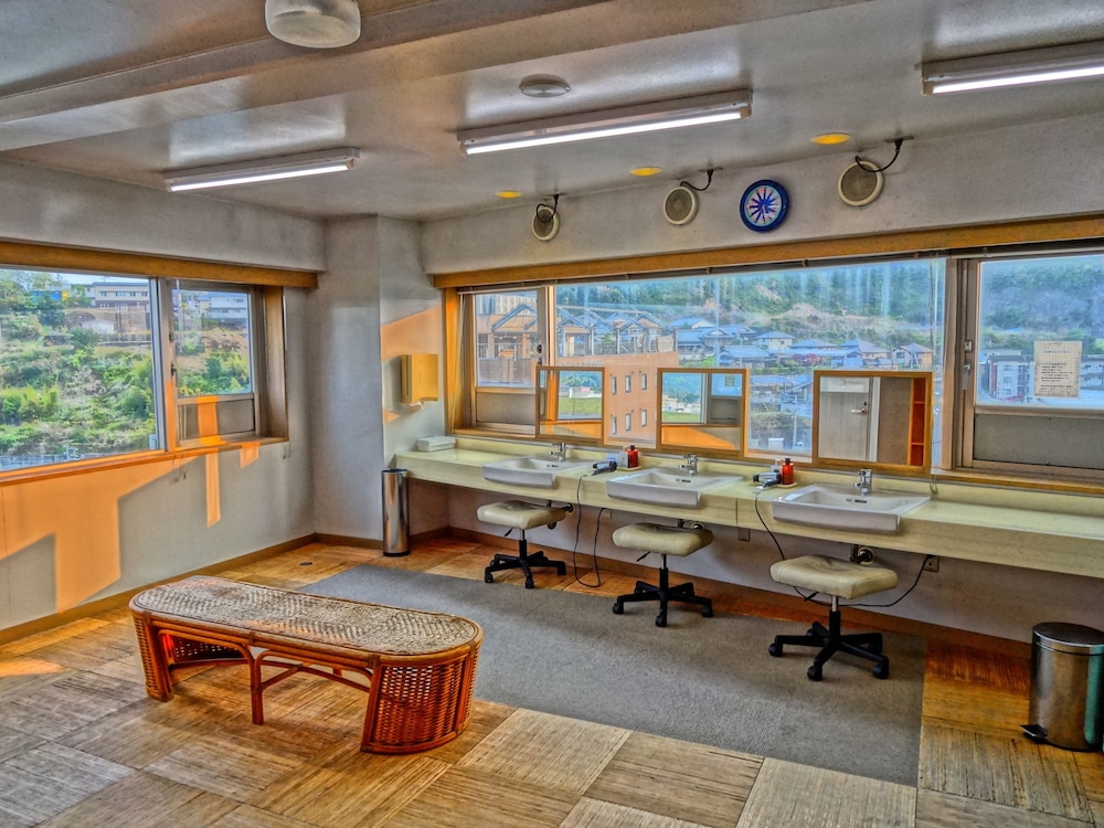 The hotel seems oriented more for Japanese guests... you have to switch your shoes for slippers near the front desk. While there are toilets in each room, the bathing facilities are shared. There is one room for men and one for women. The men's area, which I used, had a dressing room with a big mirror and cubbyholes to put your clothing, and then a typical bathing room with hand showers and stools where you wash off plus a big tub or two if you want to soak. This was pushing my comfort zone slightly, even without using the tub, but I was fine. My 6 year old daughter on the other hand was a problem. Obviously no men are allowed in the women's area, and my wife was not travelling with us. Fortunately on the first day some wonderful Japanese stranger lady, a fellow parent, took my daughter under her wing (devoting about an hour of her time) and all was well.