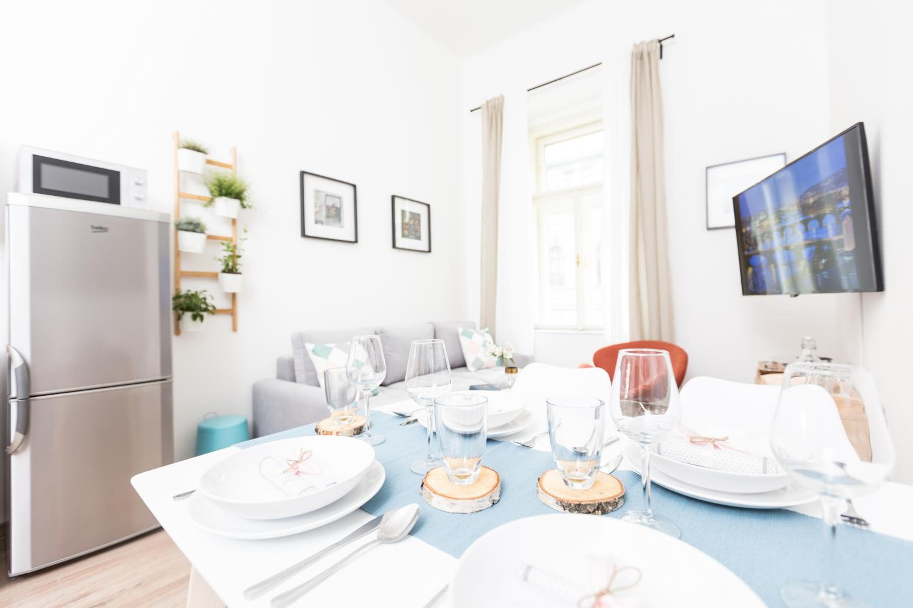 Muhteşem bir konaklama idi; kolay online check-in, girişte hiç zorlanmadık, daireyi çok beğendik. Güvenli hissettirdi. David her sorunuza yardımcı olmak için orada. ev havasında, mutfakta masa etrafında oturup sohbetler falan. yataklar rahat, ortam temiz, prag seyahatimde 3 yerde kaldım ve en sevdiğim yer burasıydı; bundan sonra da ilk tercihim olacak. Metroya, tramvaya yakın, Paul, Bagette boulevard gibi yerel hazır yemeklere yakın. Ve kod ile açılan bir bagaj odası sunmaları çok hoş ve düşünceli. çıkış yaptıktan sonra da kullanabiliyorsunuz. (Mutfağın fotoğrafını çekmeyi unuttum.)