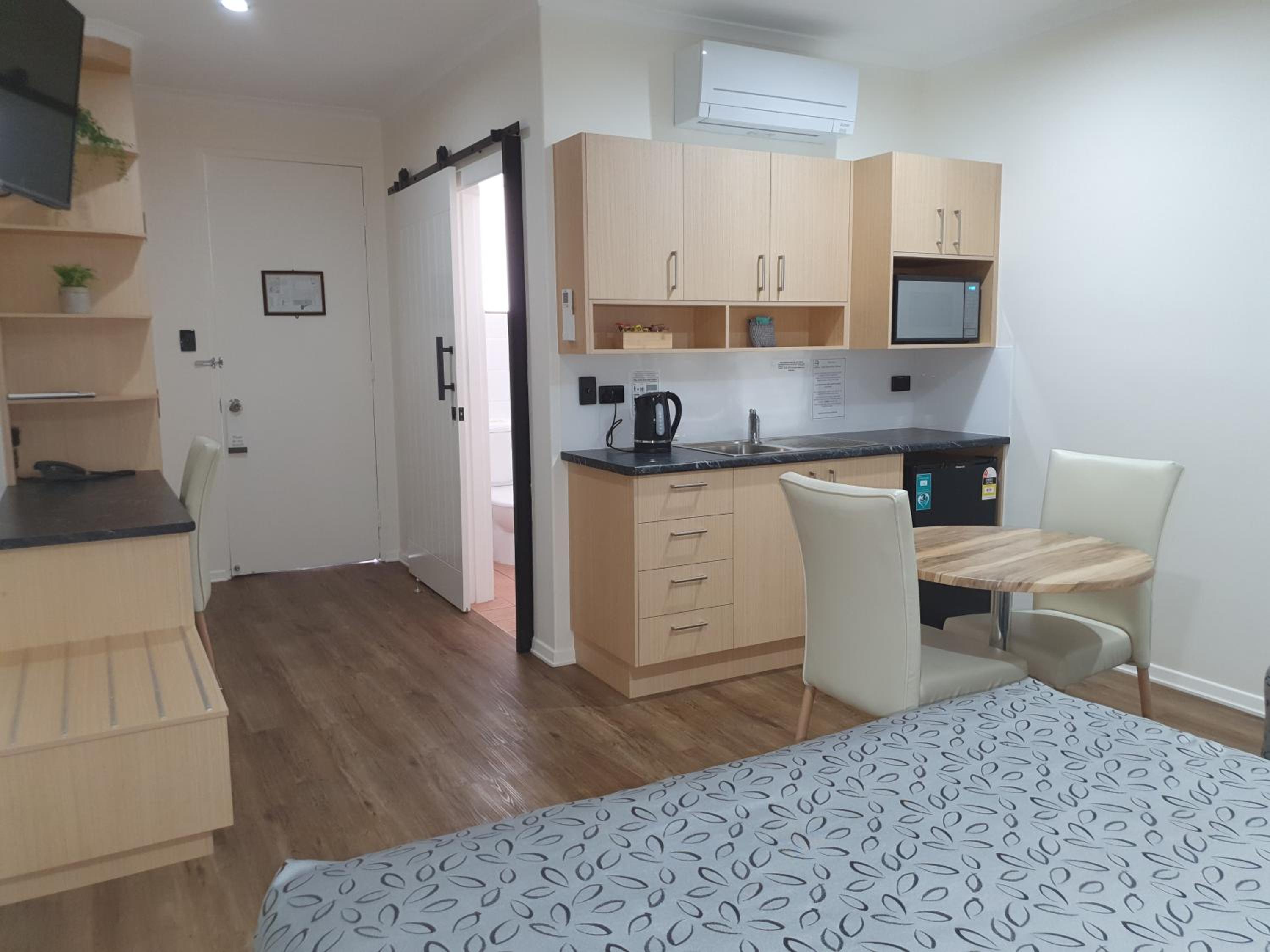 Each room is equipped with modern amenities including a flat-screen TV, refrigerator, and private bathroom. Upgrade to a room with a spa bath for added luxury.