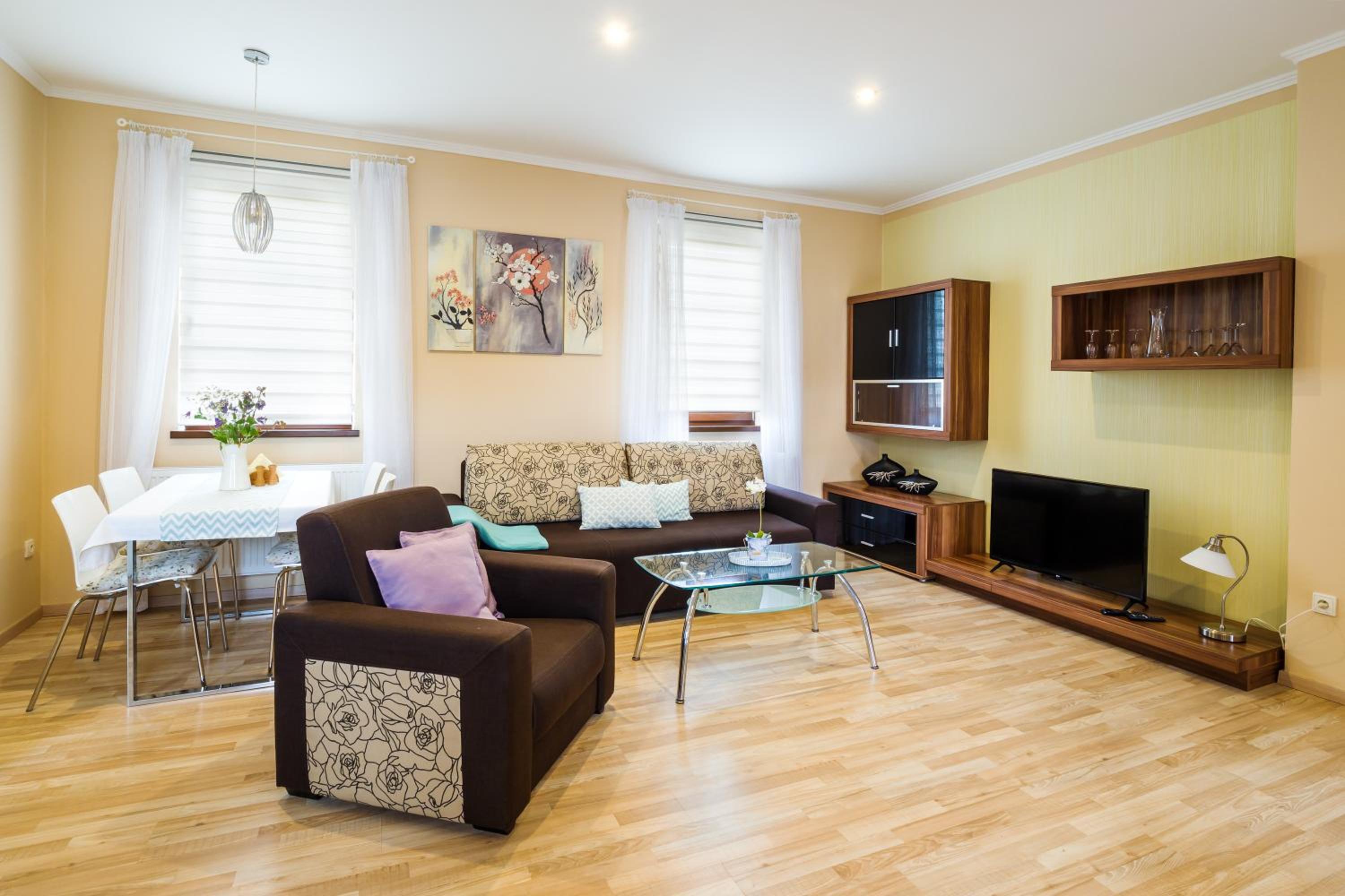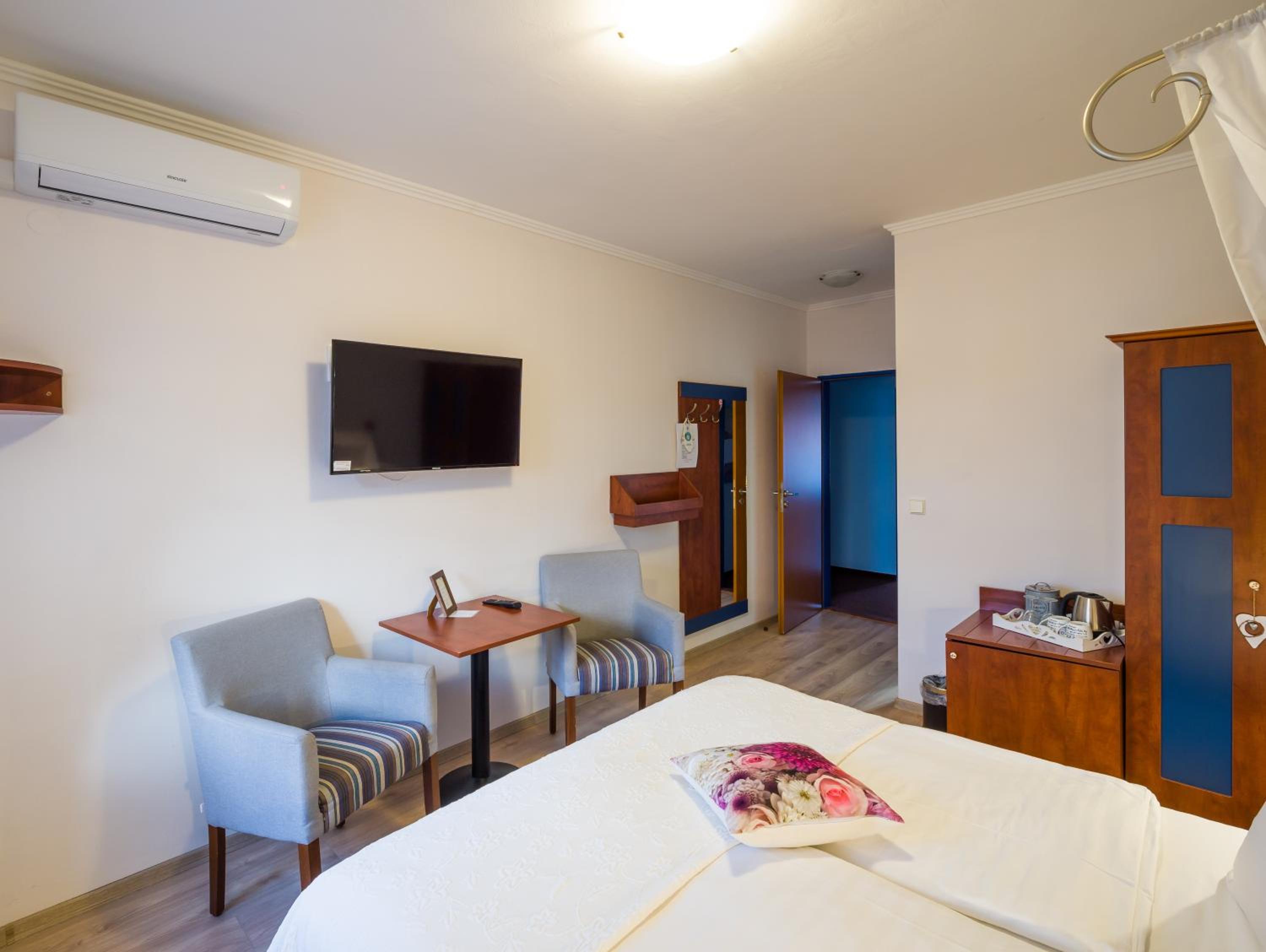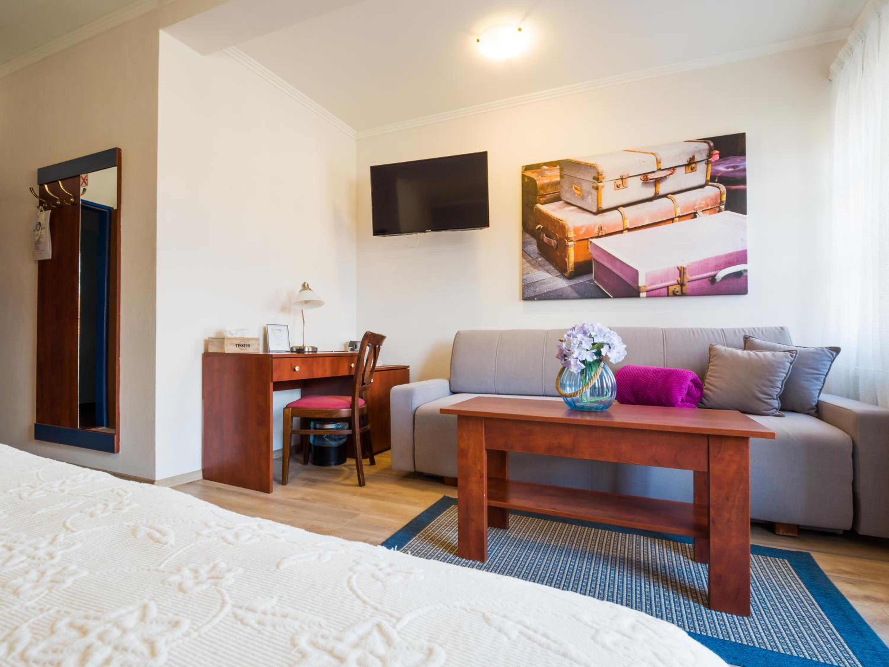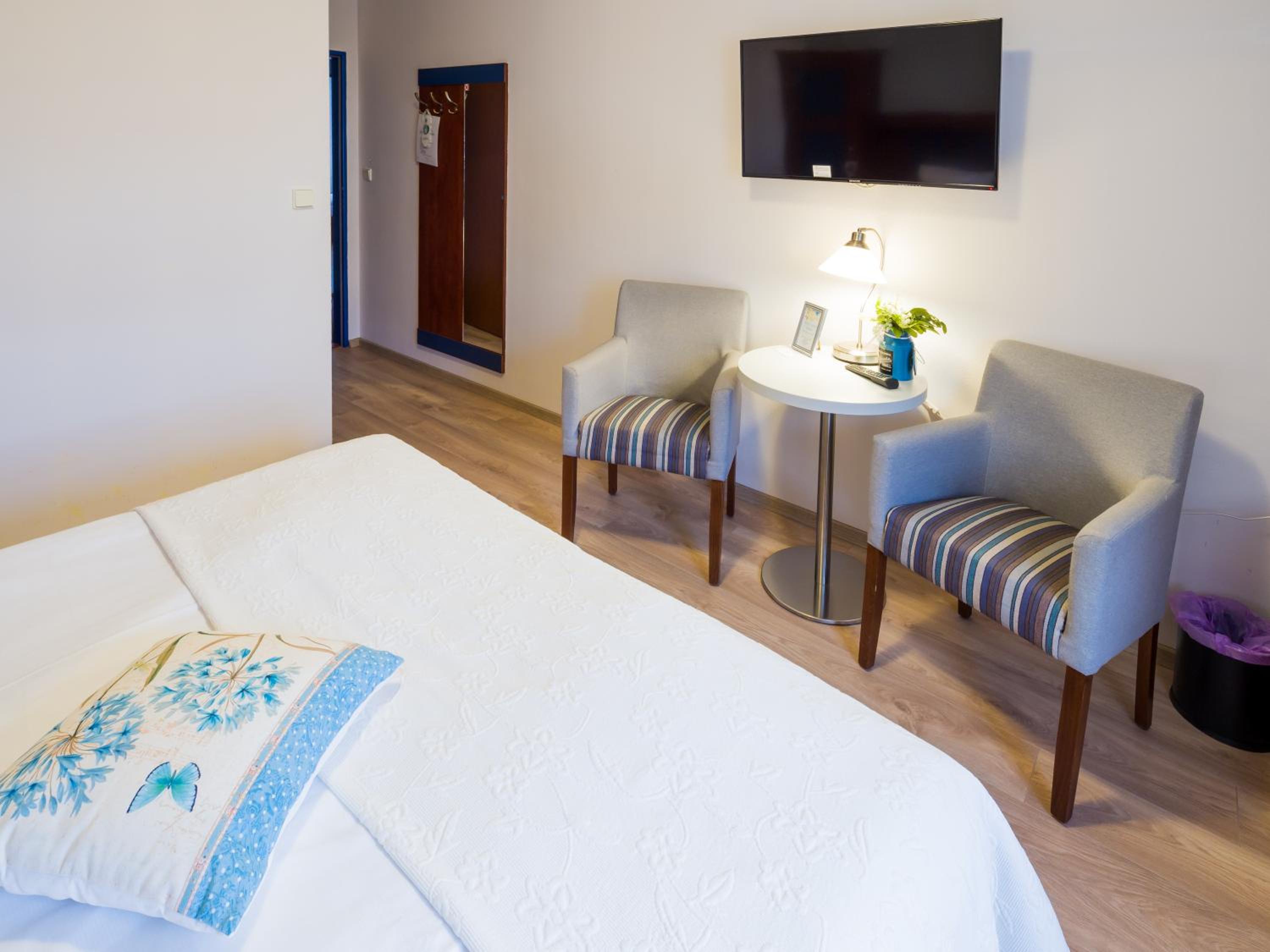 Pokoje zadbane i czyste. Ktoś dba tutaj o drobiazgi :) parking na dziedzińcu budynku z zamykaną bramą na noc na duży plus. Pyszne śniadanie.