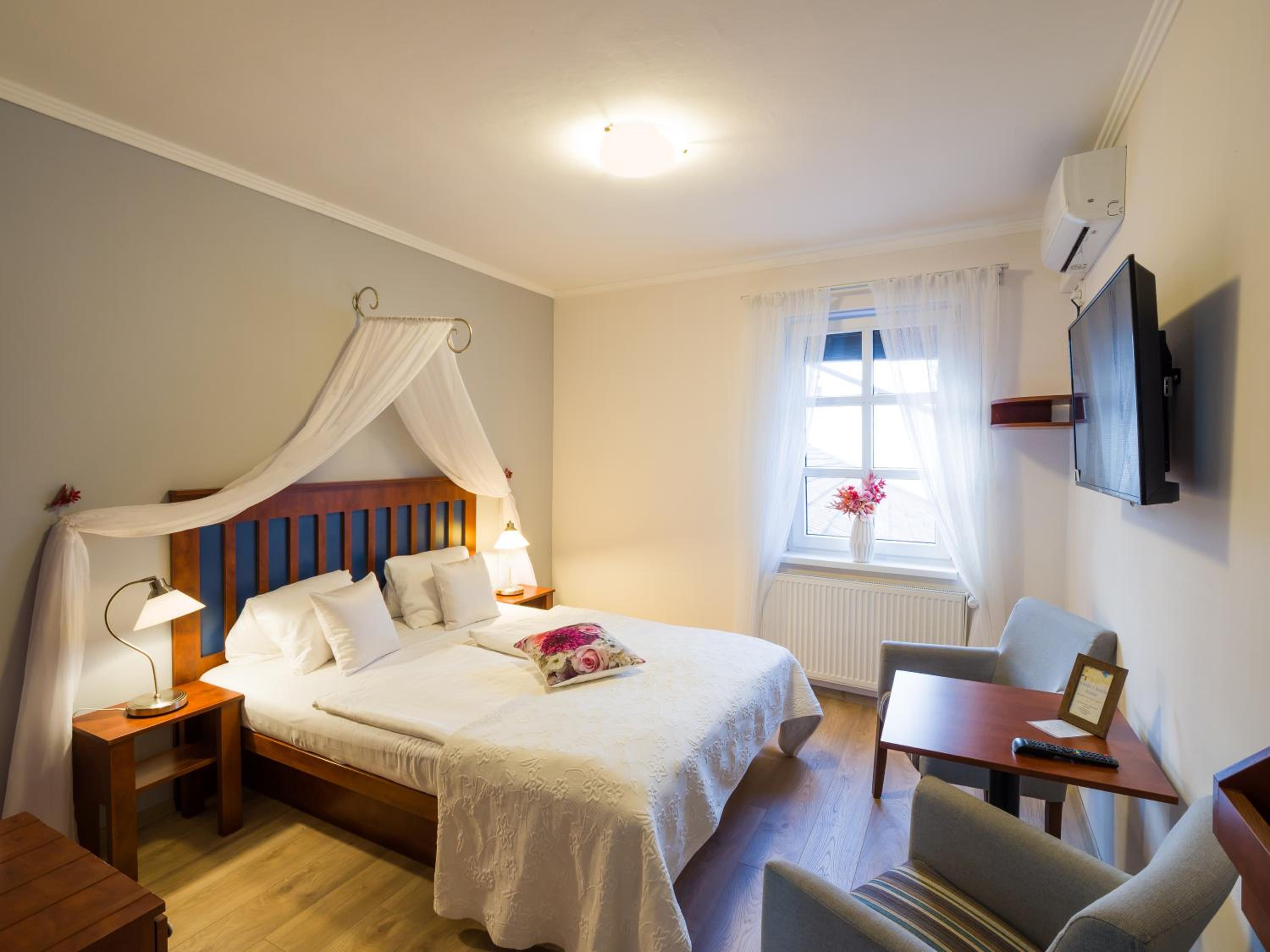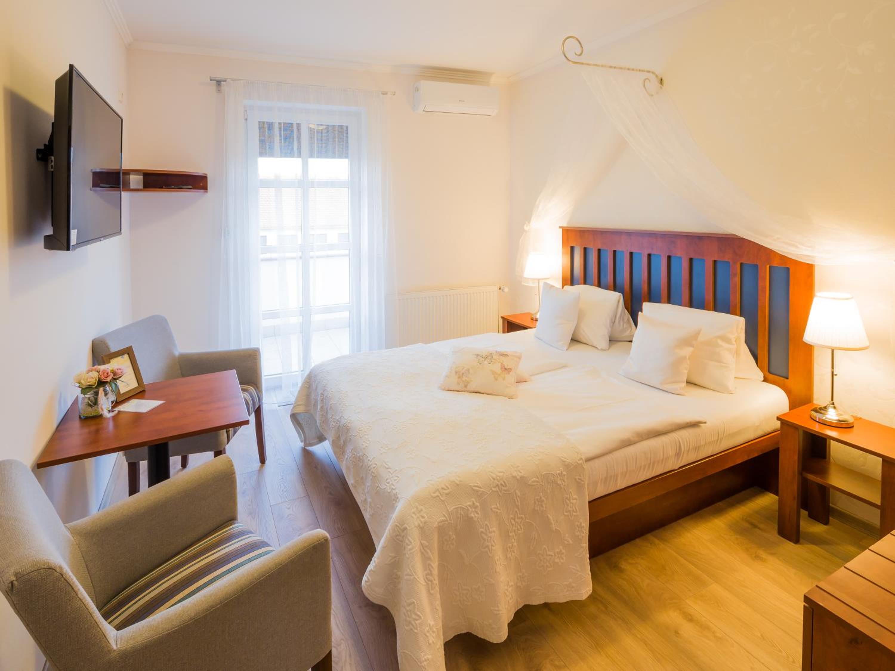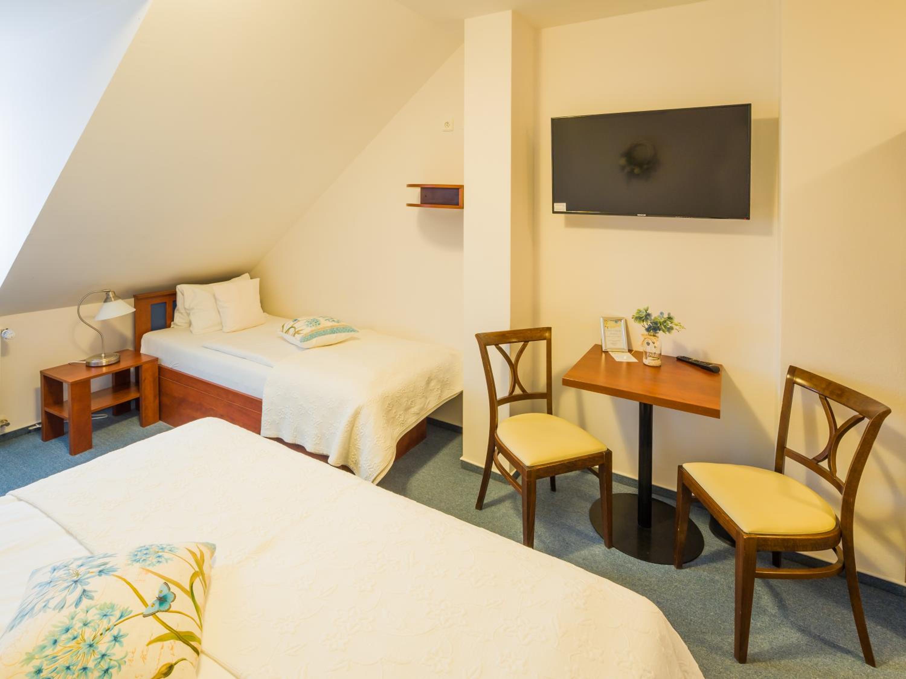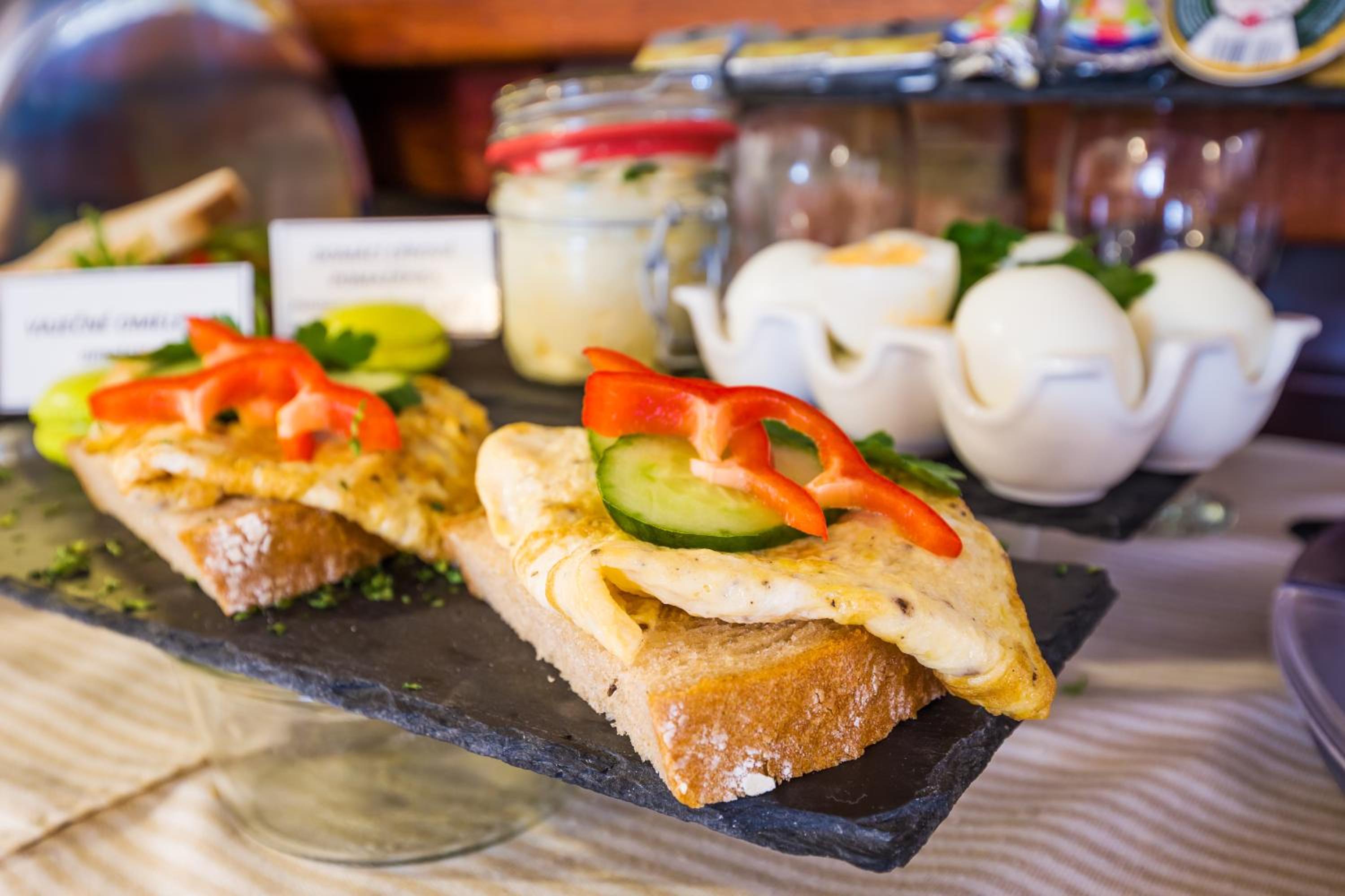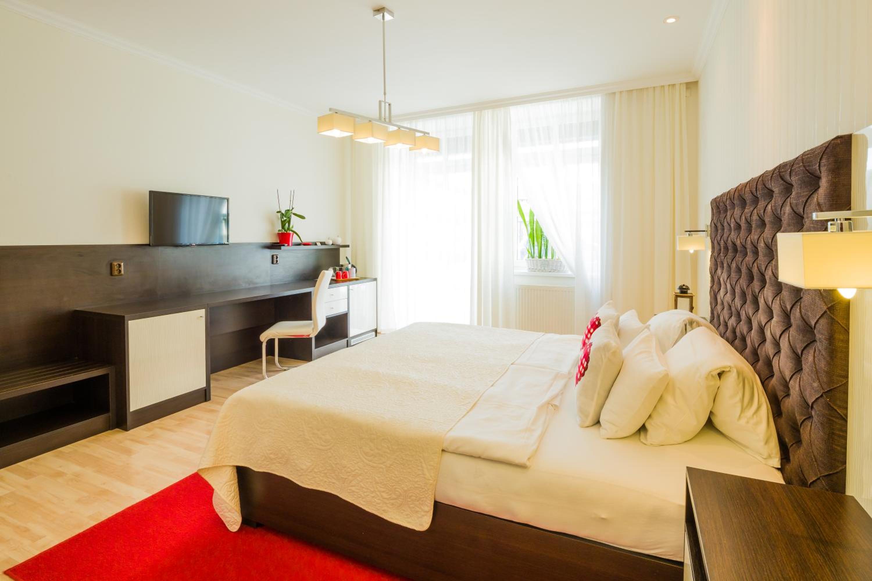 Guests can relish a daily breakfast spread in the charming dining lounge or outside on the spacious garden terrace. For lunch and dinner, the on-site restaurant specializes in Moravian delicacies and wines, creating a delectable culinary journey.