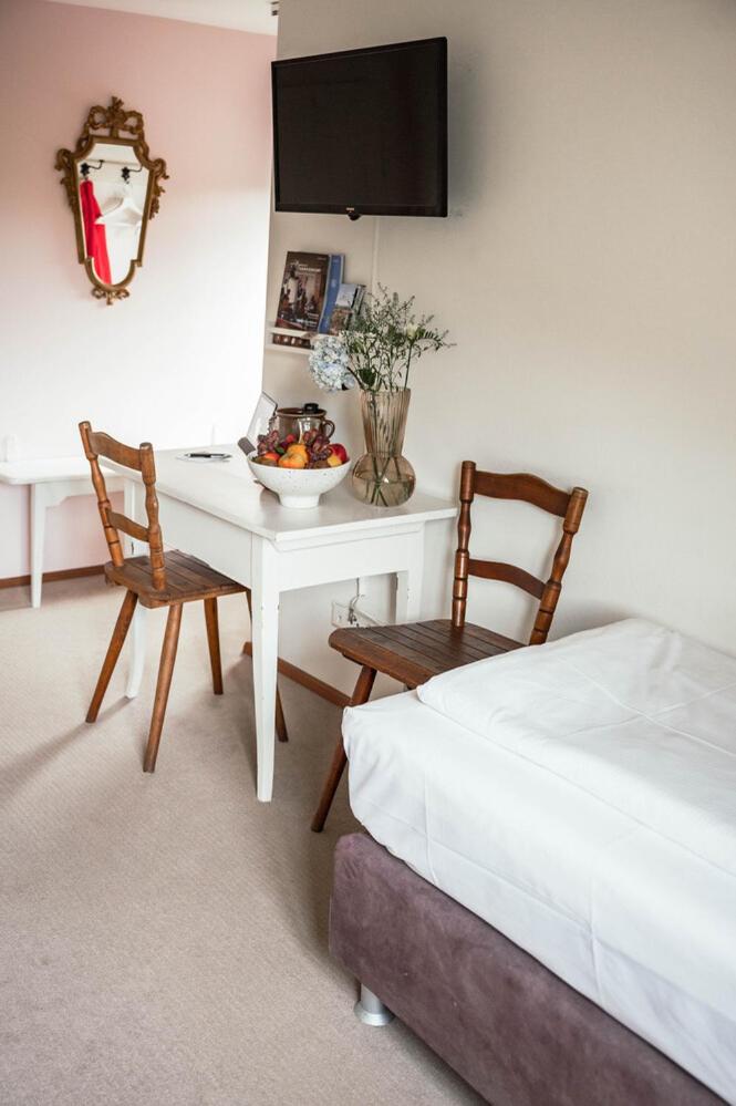 Wunderschöner Landgasthof mit sehr schönen Zimmern, feste Matratzen, mehrere unterschiedliche Kissen und kleines, zweckmässiges Bad mit Dusche. Unbedingt einen Tisch zum Essen reservieren, denn das Essen ist perfekt.