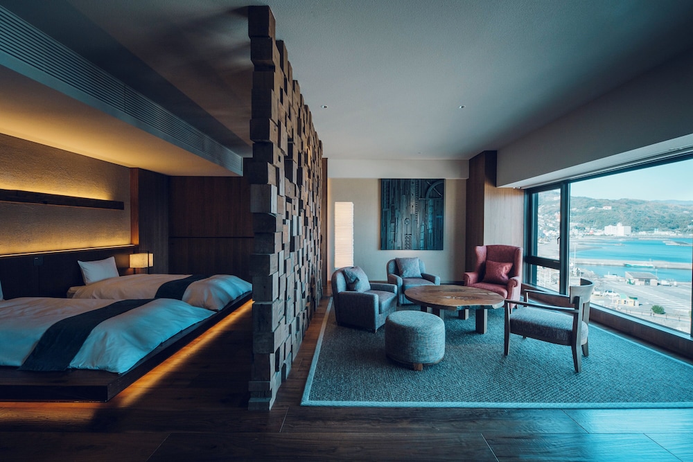 Very nice boutique hotel. Staff are friendly, eager to help and speak English well. Parking is attached and free. Hotel lobby, restaurant and common areas are very well designed, modern and tasteful with many nice details. Room is super comfortable and feels luxurious and spacious. Nice view to ocean and a sculptural park. Dining is very very good. Besides the great food, restaurant staff are amazing! The onsen is nice and clean. I’ll want to come back and recommend to my friends.