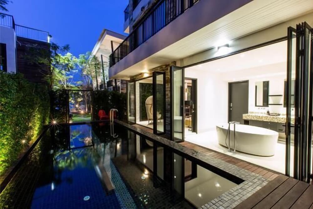 This is a small but modern family hotel. Set on the beach next to a kitesurfing site it is south of the Hua Hin city (15 km) and in the middle of condominiums. Beautiful pool, nice restaurant on-site, and kitesurfing lessons available at the beach. The beach is gentle & great for kids.