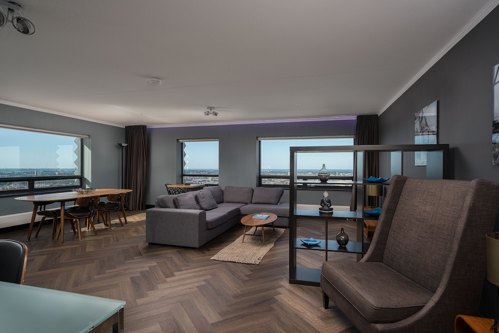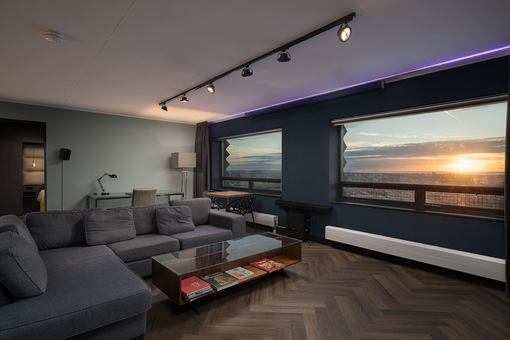 We hebben een heerlijk verblijf gehad op de 39e verdieping. Grandioos uitzicht over de stad richting de zee. De (facilitaire) voorzieningen waren prima in orde. Alles wat je nodig hebt is aanwezig. Ook is de accomodatie heel goed bereikbaar vanaf Hollands Spoor.